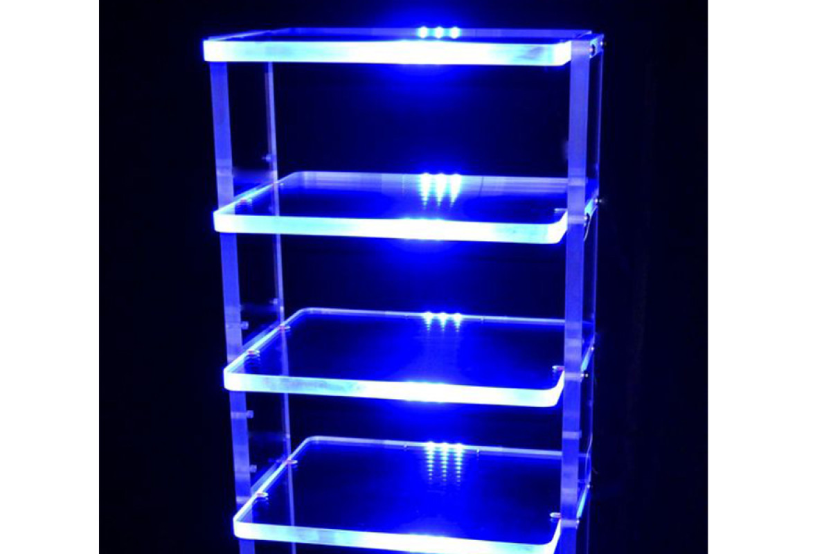 Clip LED plastic for lighting glass shelves 6 cm 12V/DC 0.72w blue light, white wire LEDUA