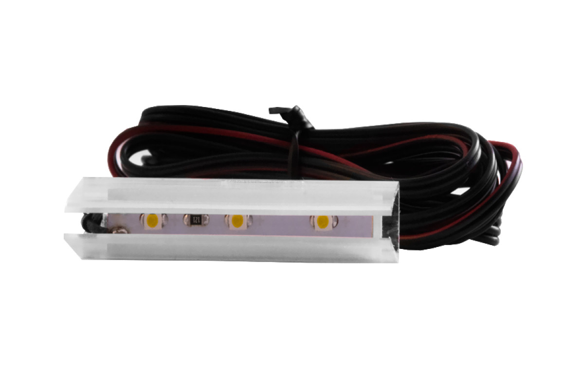 Clip LED plastic for lighting glass shelves 6 cm 12V/DC 0.72w red light, black wire LEDUA