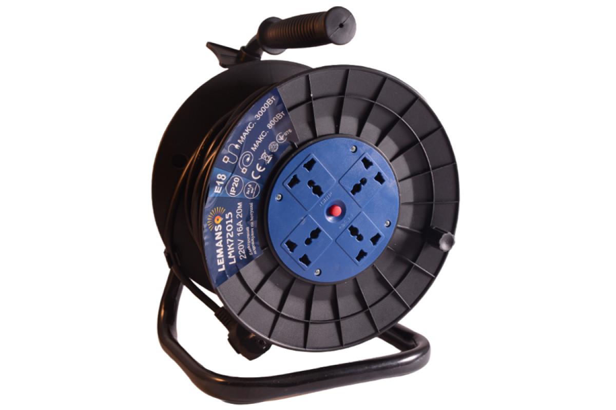 Coiler-coil LMK72015 4 universal sockets 20m 16A s/w overload protection, maximum voltage 800-3000W Lemanso