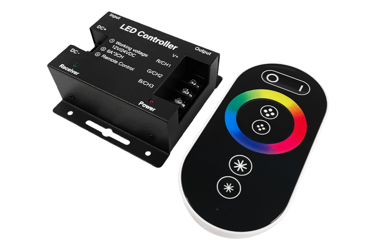 Controller black RGB 12-24V 6A per channel, touch radio 6 buttons LEDUA