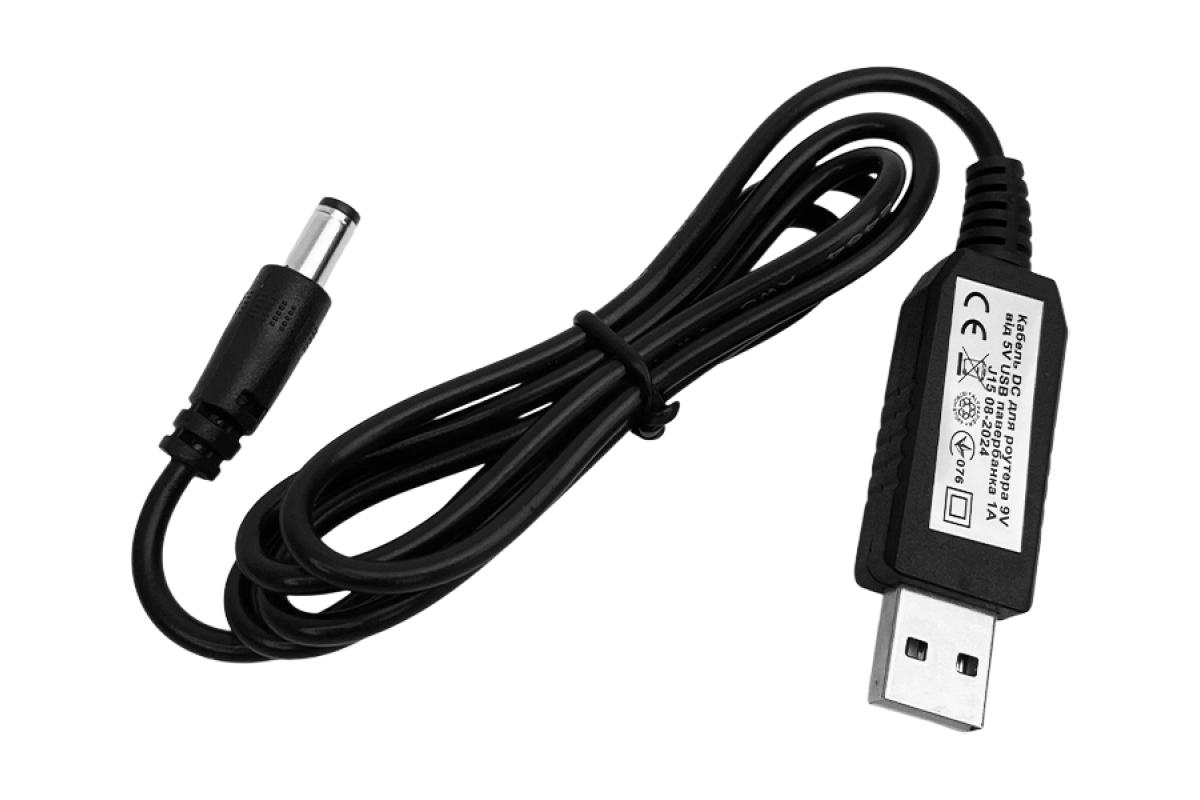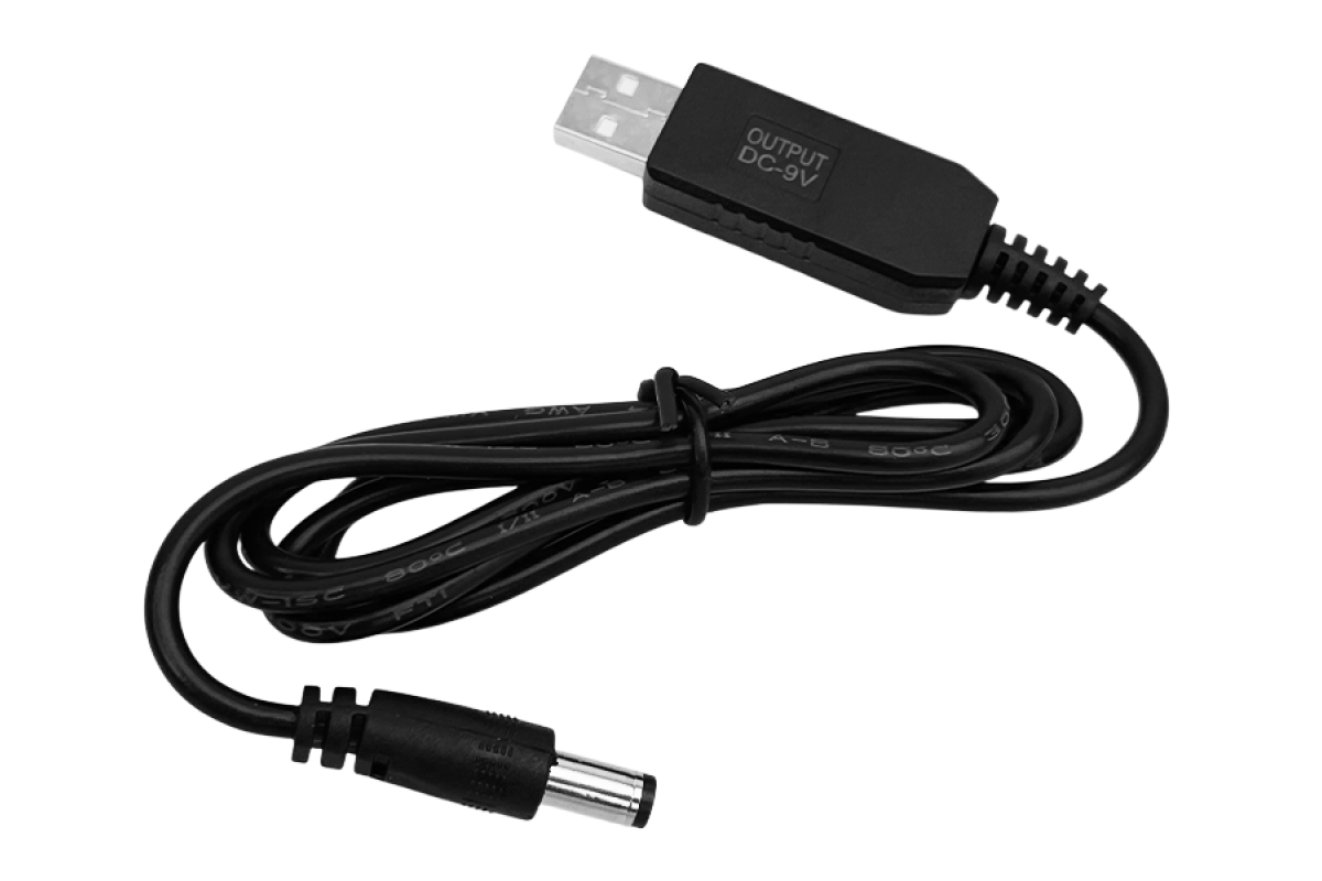 DC cable for router 12V or 9V from 5V USB power bank 1A length 1m