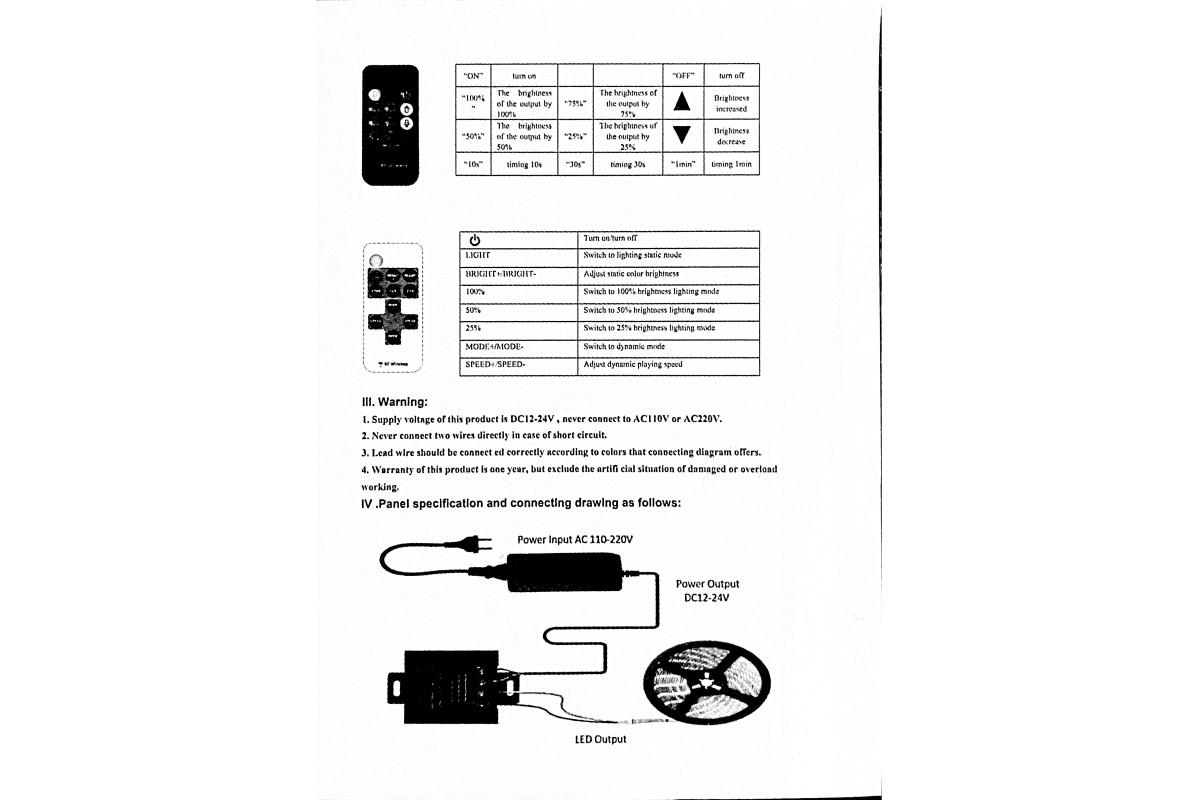 DC12-24V dimmer (30A 1channel) D-30A-RF-3 buttons OEM