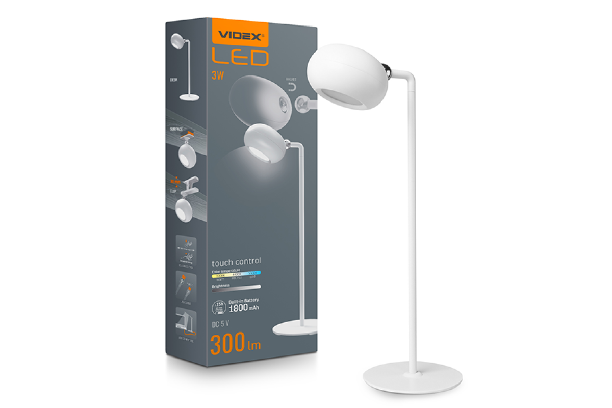 Desktop rechargeable lamp 3W 5V 3000-5500K white (VLE-TF18W) VIDEX