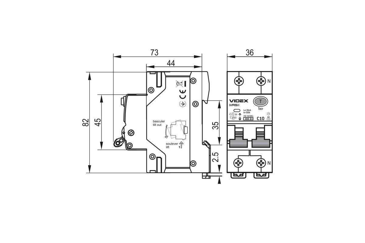 Differential circuit breaker VIDEX RESIST AC 2p 30mA 6kA 10A