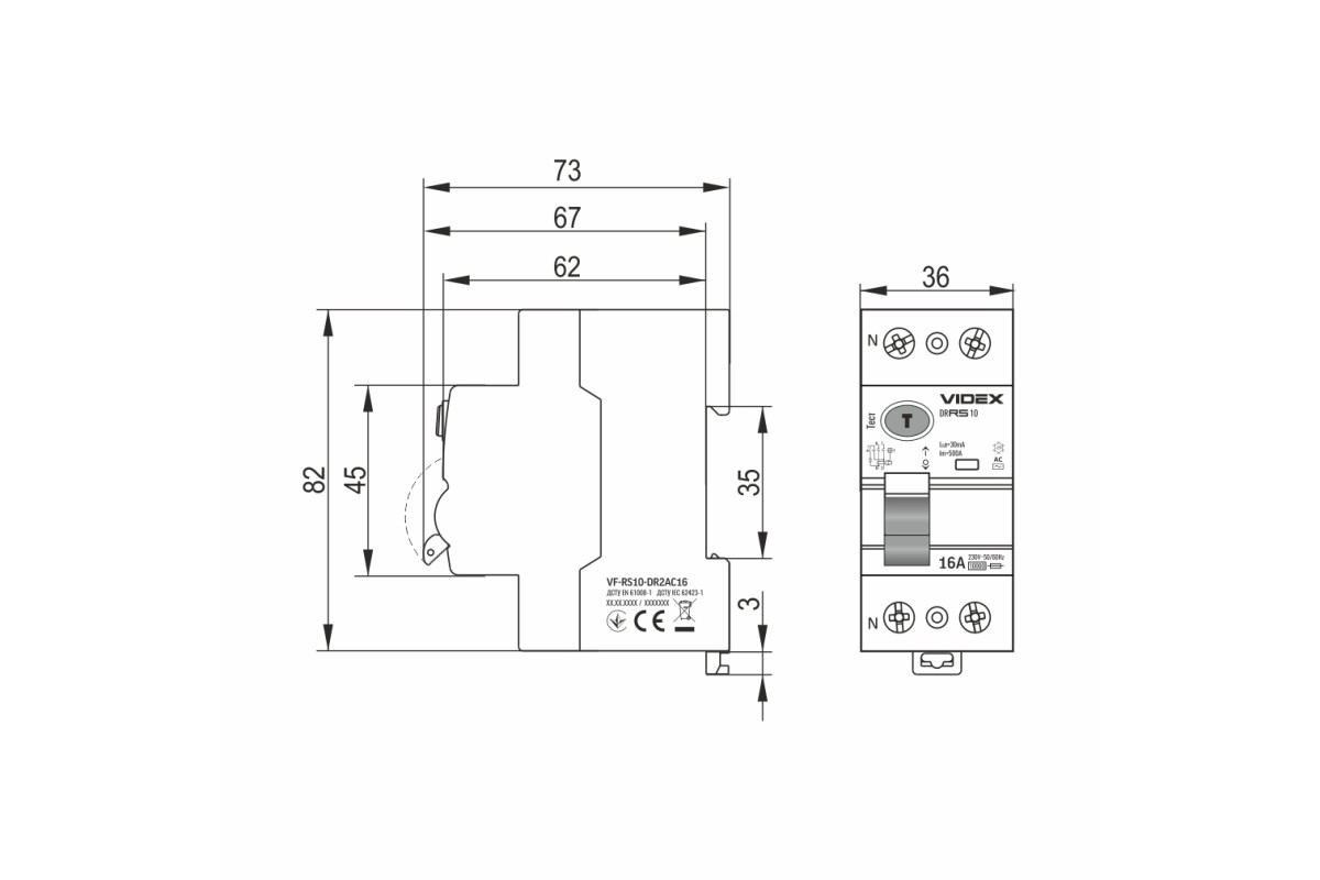 Differential relay VIDEX RESIST AC 2p 30mA 10kA 16A
