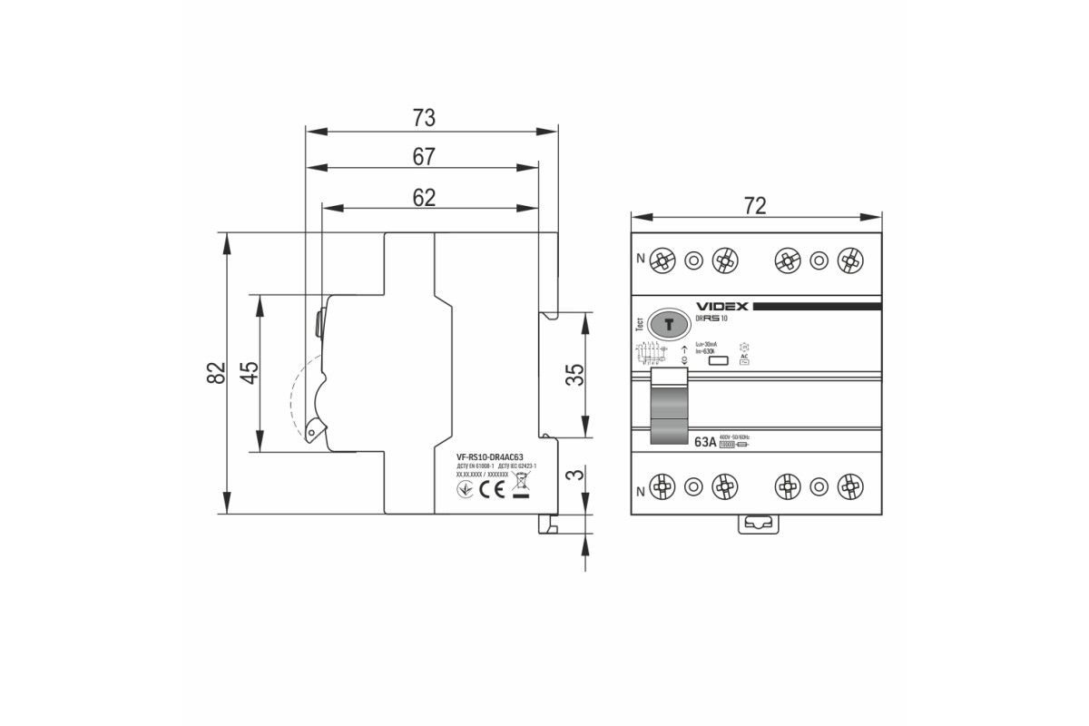 Differential relay VIDEX RESIST AC 4p 30mA 10kA 63A
