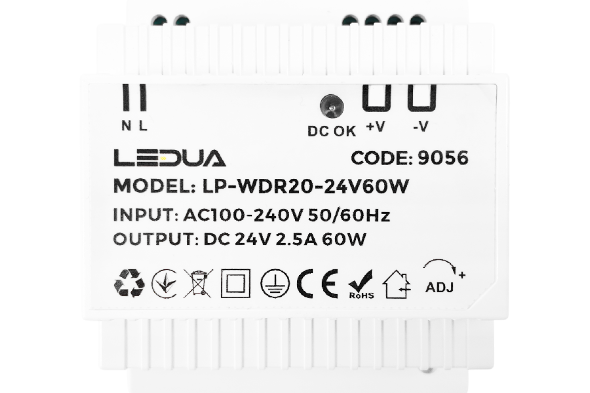DIN-rail power supply 60W 2.5A IP20 24V (LP-WDR20-24V60W) 2 years warranty LEDUA