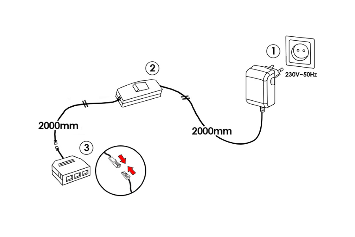 Driver set 24W+hand switch+junction box 3 outputs, white 12V LEDUA