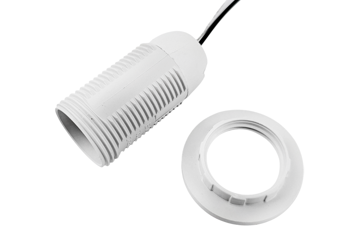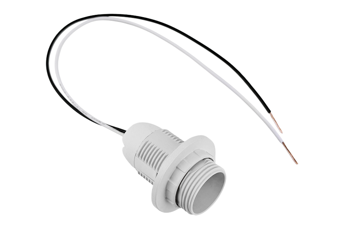 E14 plastic lampholder, thread with ring, wires 15cm/LM2510