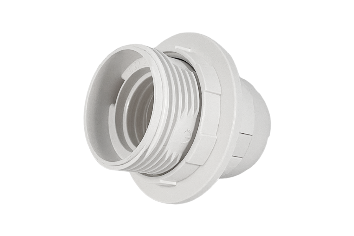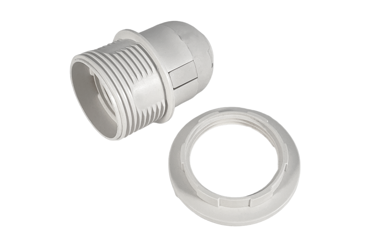 E27 plastic lampholder /thread-ring+locking ring/ white YK766