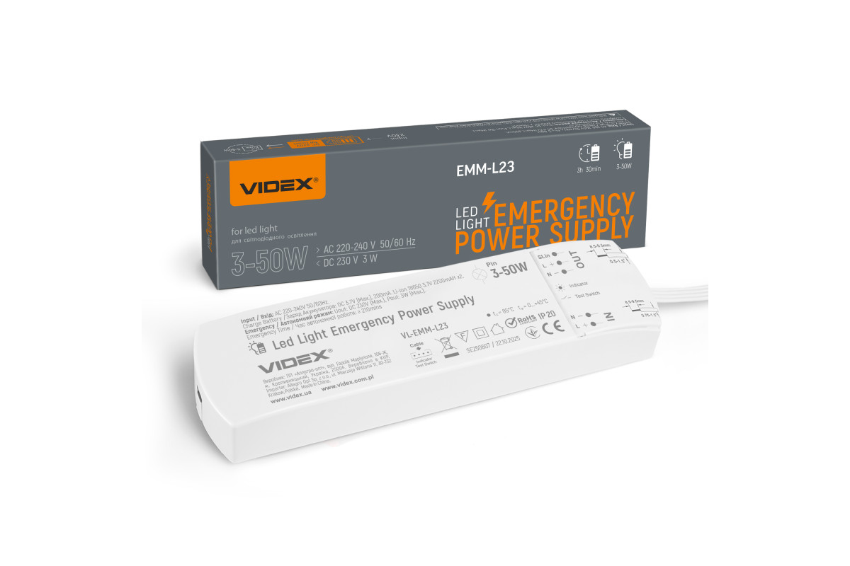 Emergency power supply unit for LED lamps VIDEX VL-EMM-L23