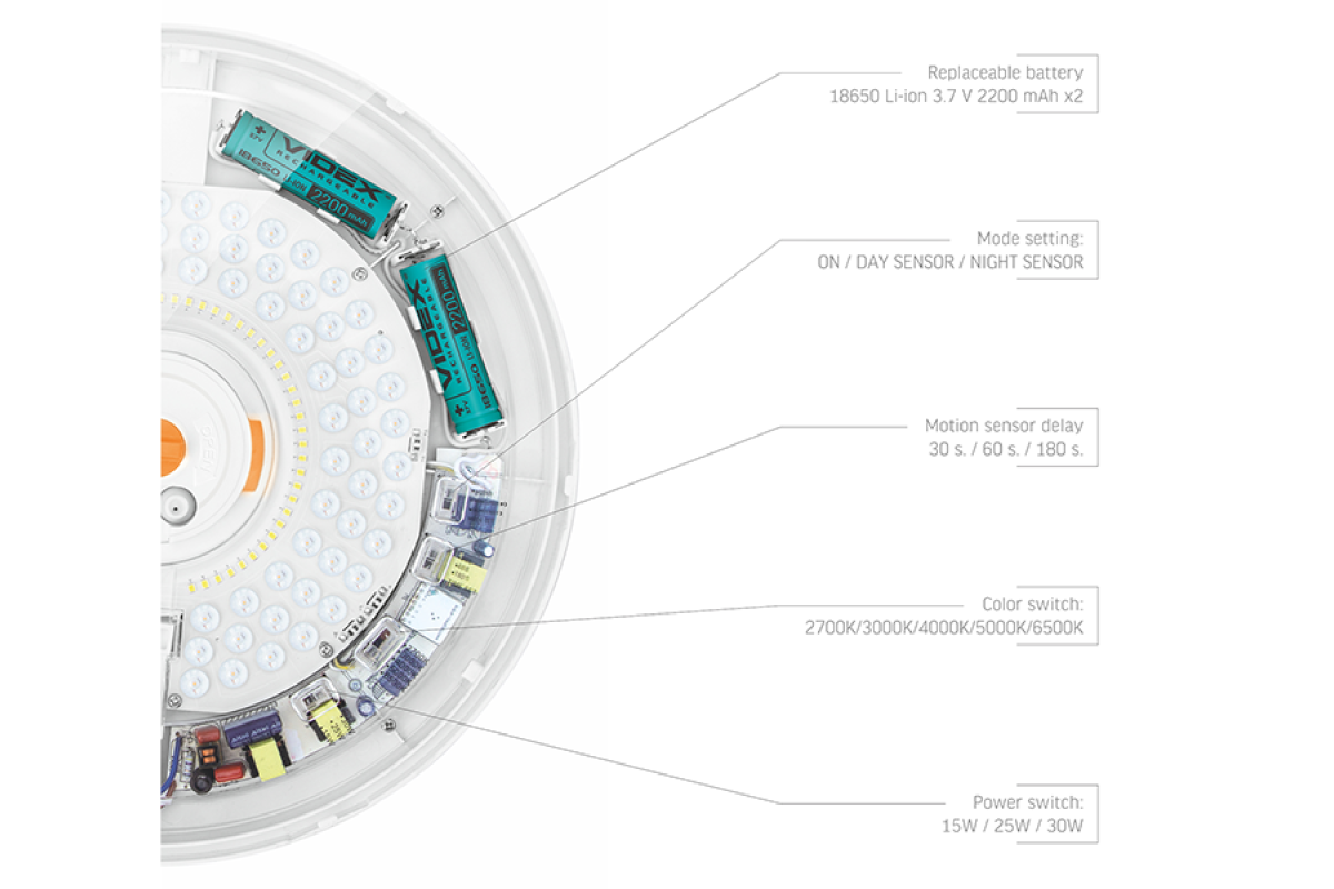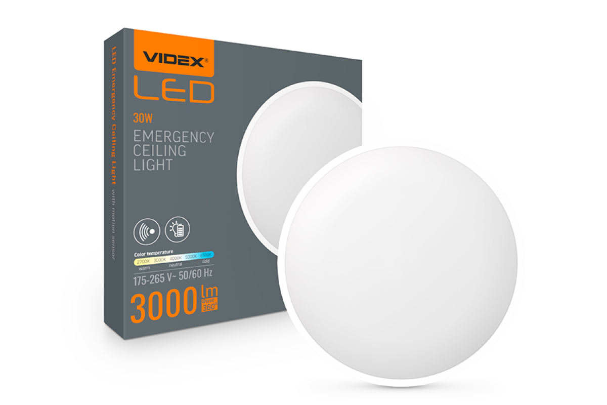 Emergency surface-mounted luminaire with motion sensor 30W 2700-6500K 220V (VL-CLR-EM300-2) VIDEX