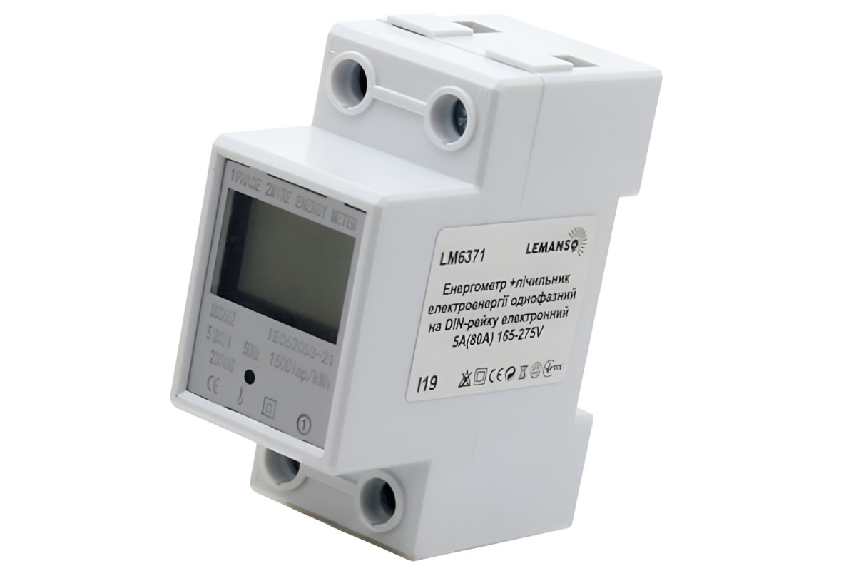Energy meter + electricity meter 5A(80A) 165-275V LM6371 single-phase Lemanso on DIN-rail LCD display