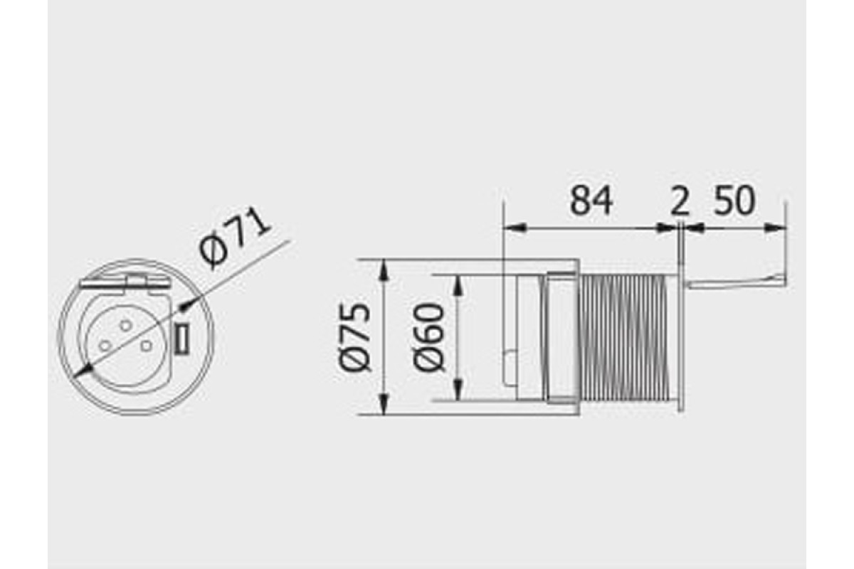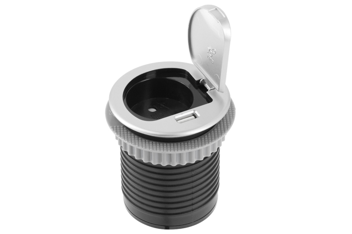 Extension cable CHARGER MINI 60mm 1 socket SCHUKO 1xUSB 2.4A cable 1.9m 220-240V Aluminum GTV AE-BPW1S1UCH-53
