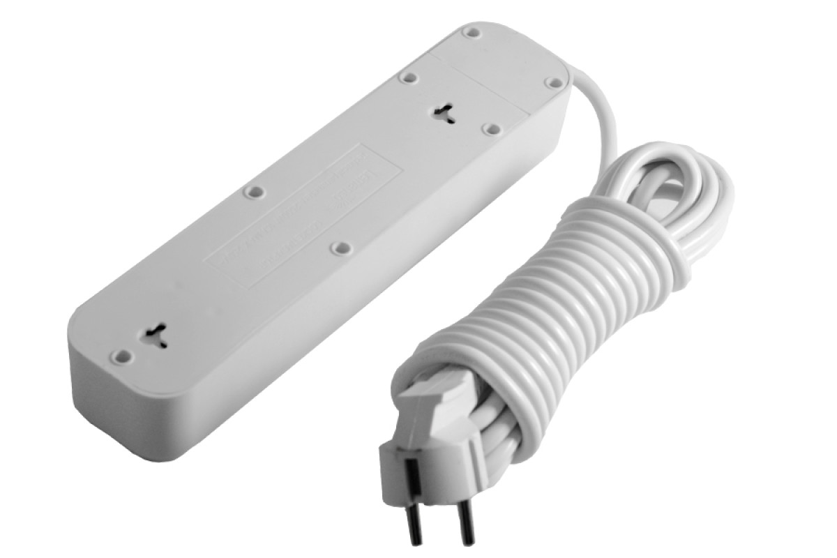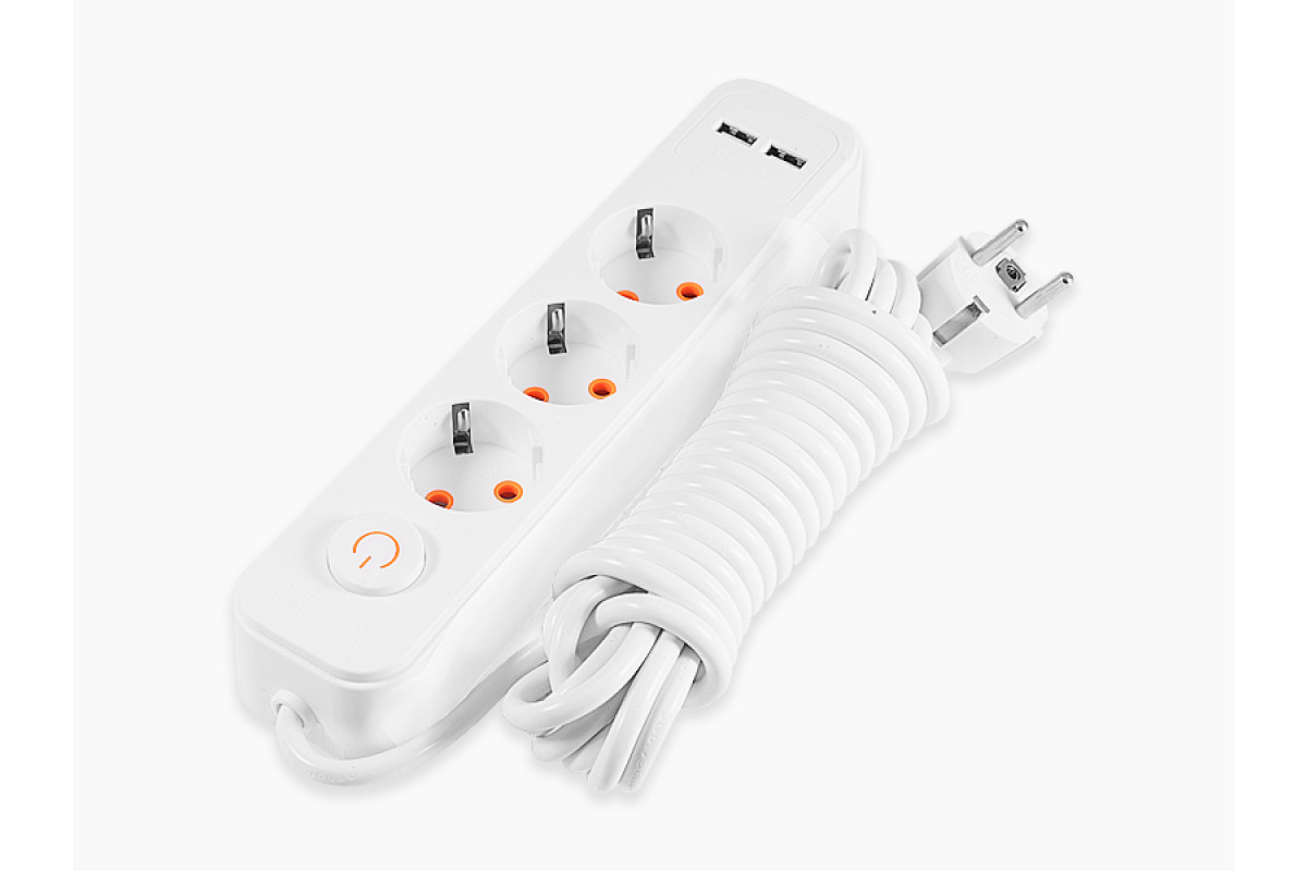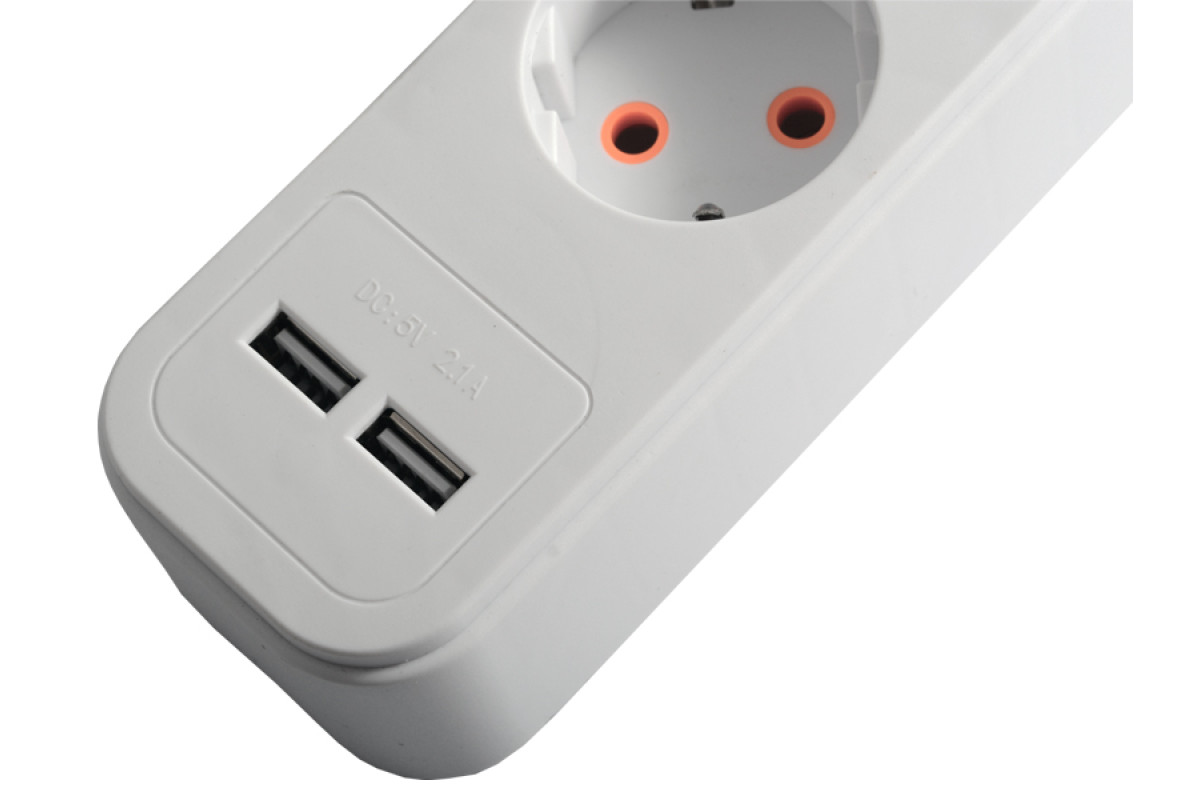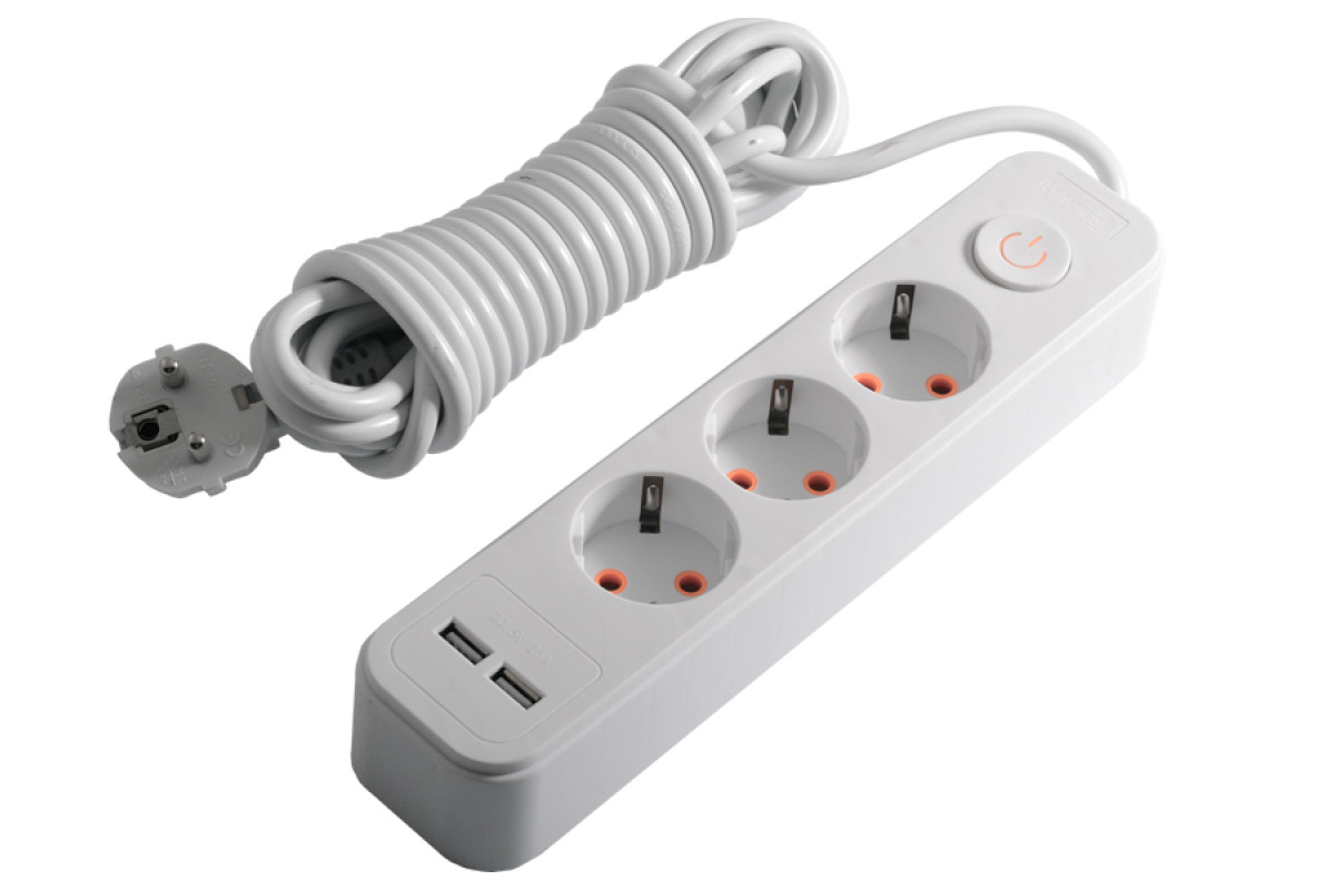 Extension cable white 3 gang 5m with 2*USB (2100mA) with/ground 5x1.0mm max. 3500W with button / LMK71007 Lemanso