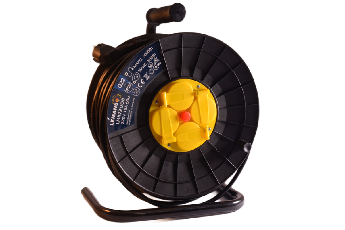 Extension coil LMK72008 4 sockets with covers 50m 16A with/with overload protection, maximum load 800-3000W Lemanso