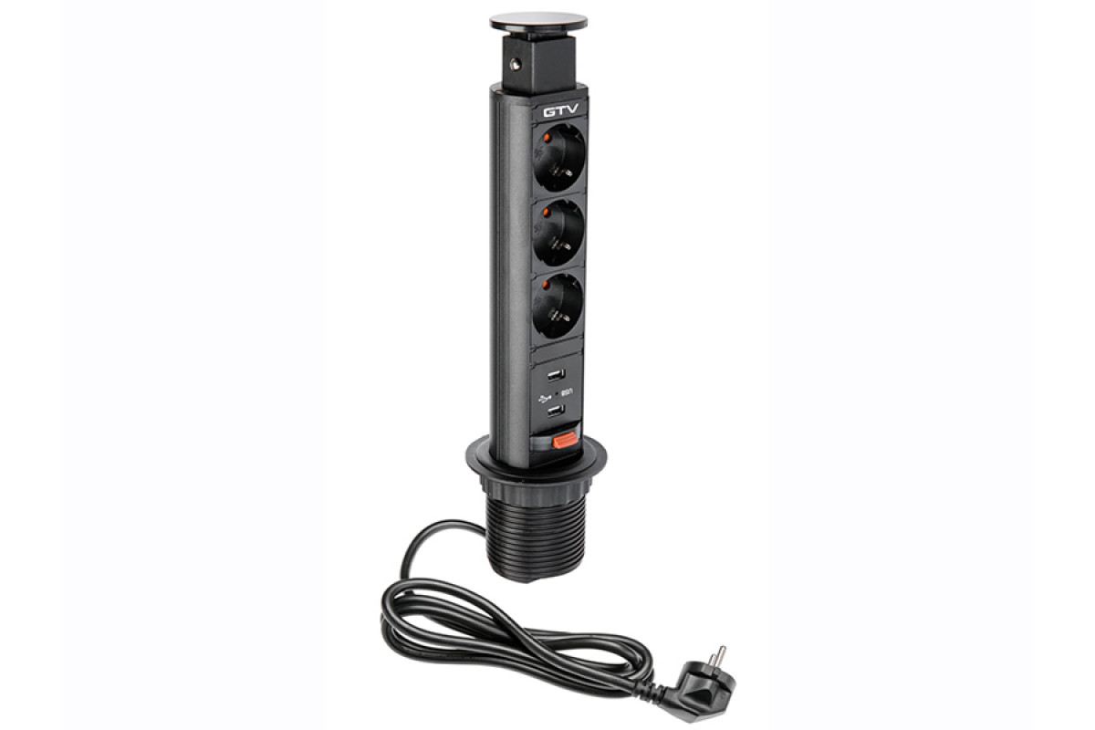 Extension cord d 60 3 SCHUKO sockets 2xUSB 220-240V Black GTV
