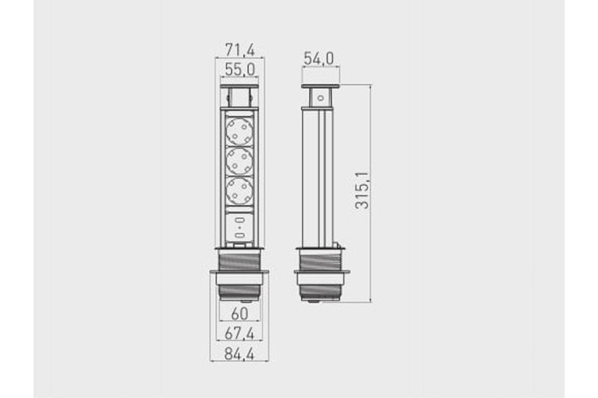 Extension cord d 60 3 sockets SCHUKO Black 220-240V AE-BPW3S60-20 GTV