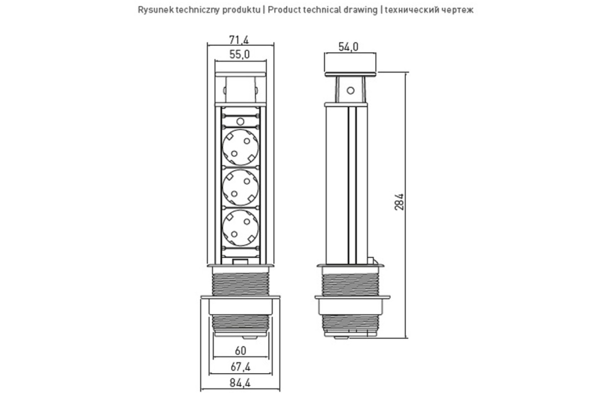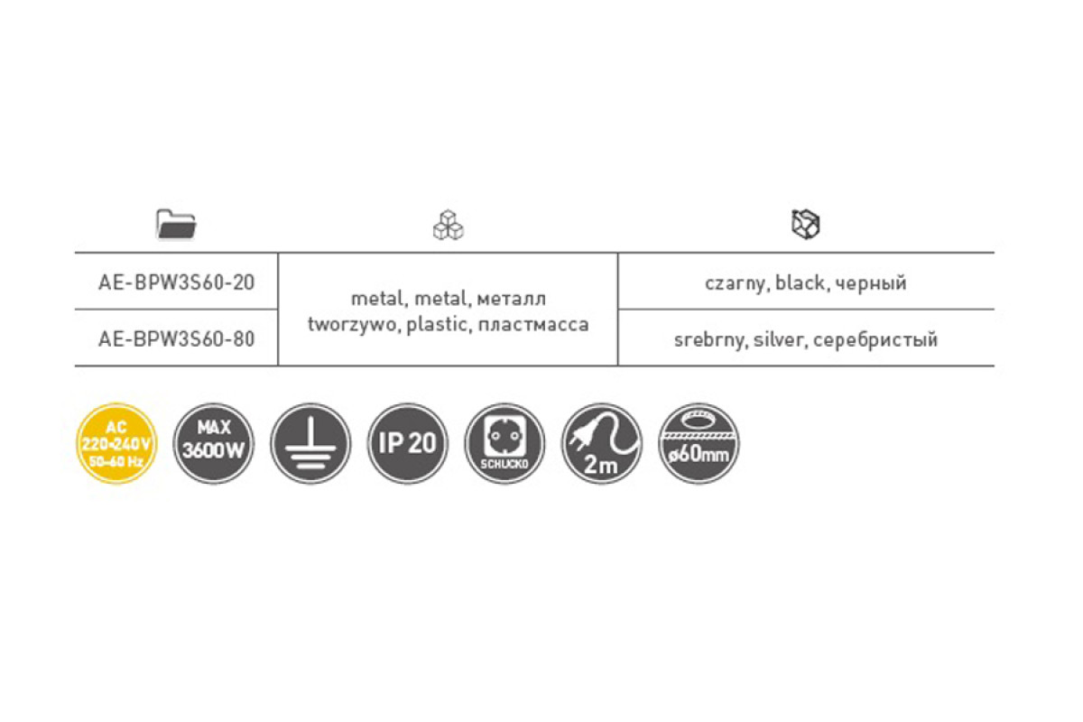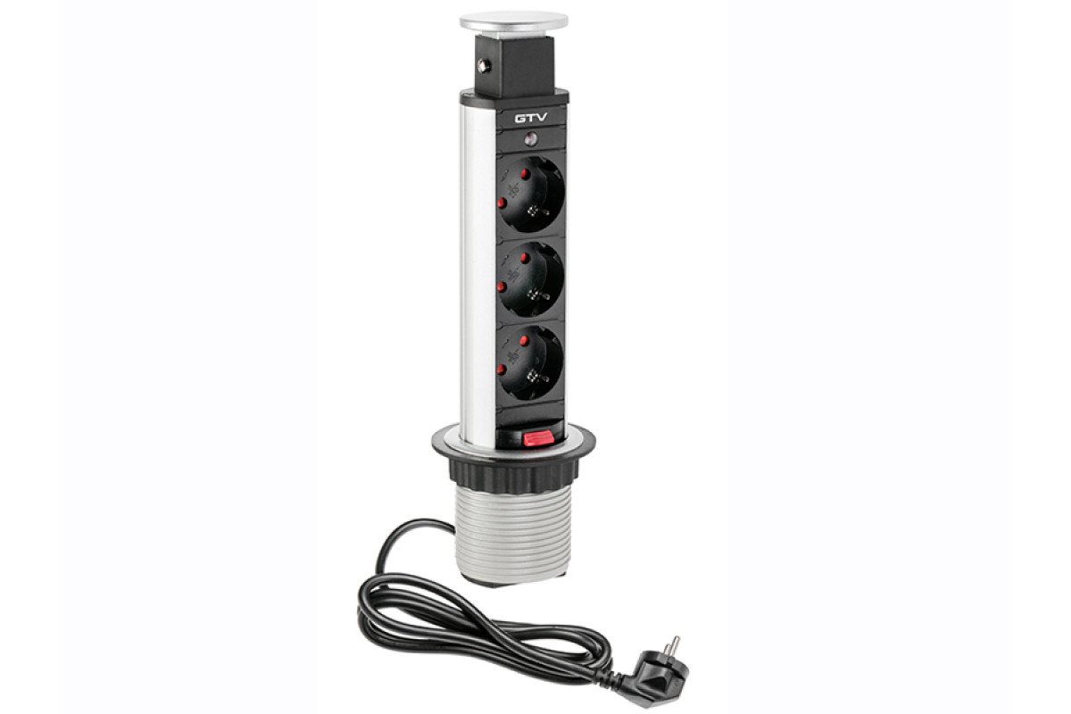 Extension cord GTV d 60 3 sockets SCHUKO cable 1.5m Gray 220-240V AE-BPW3S60-80