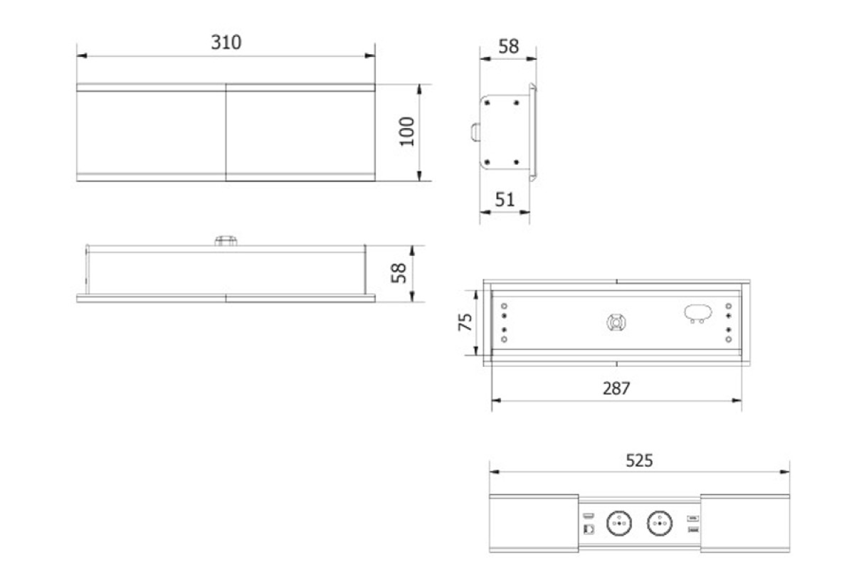 Extension cord PRESTINO 2 sockets SCHUKO USB A+C QC RJ45, HDMI cable 1.5m 220-240V Aluminum GTV