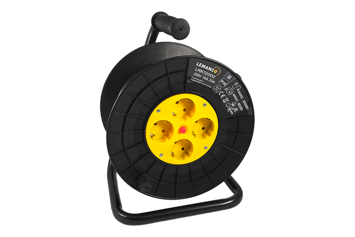 Extension cord-reel LMK72002 4 sockets 20m 16A with/with overload protection, maximum load 800-3000W Lemanso