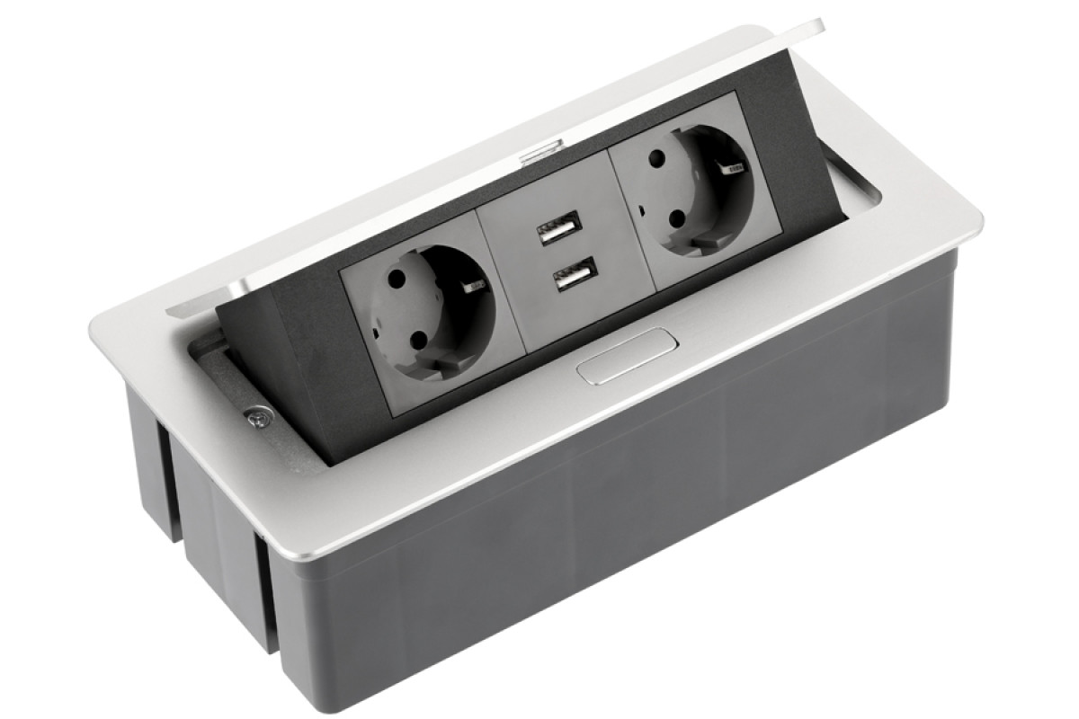 Extension cord SOFT 2 sockets SCHUKO 2xUSB cable 1.5m with plug 220-240V Aluminum GTV