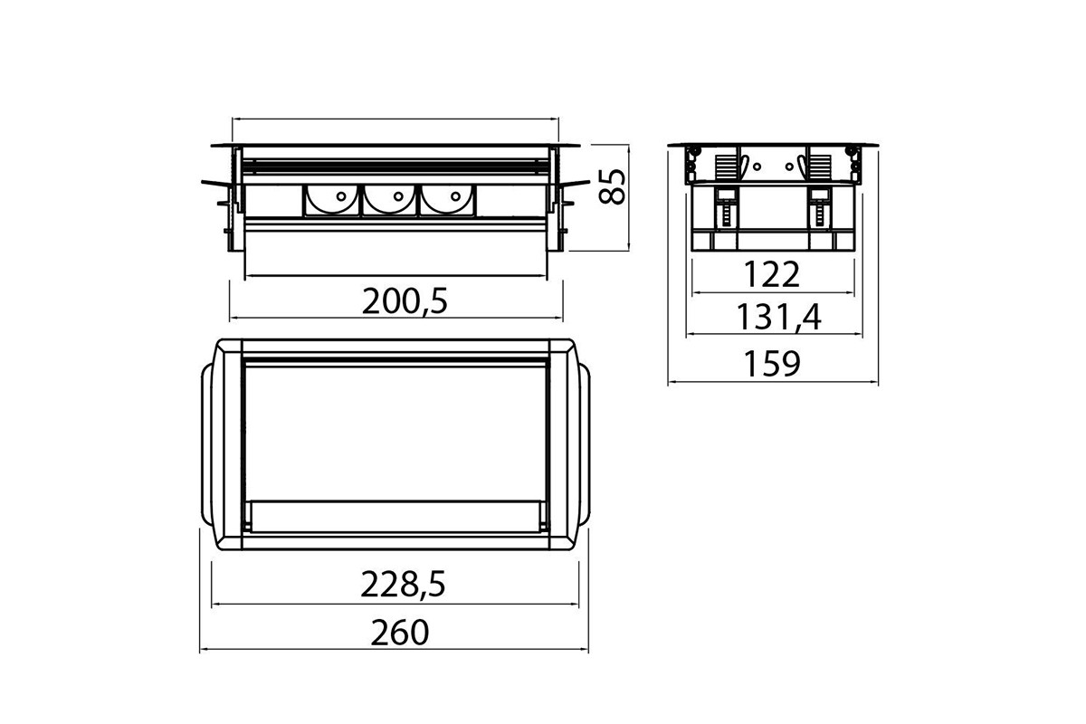 Extension cord with cable passage 3 sockets SCHUKO wire 1.5m with plug 220-240V Aluminum AE-PBC3GS-53BKS GTV