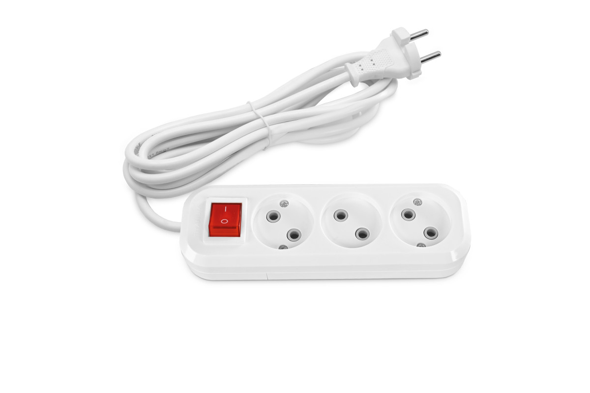 Extension cord without grounding 3 sockets with button 3m (2x1mm) white TITANUM STANDARD