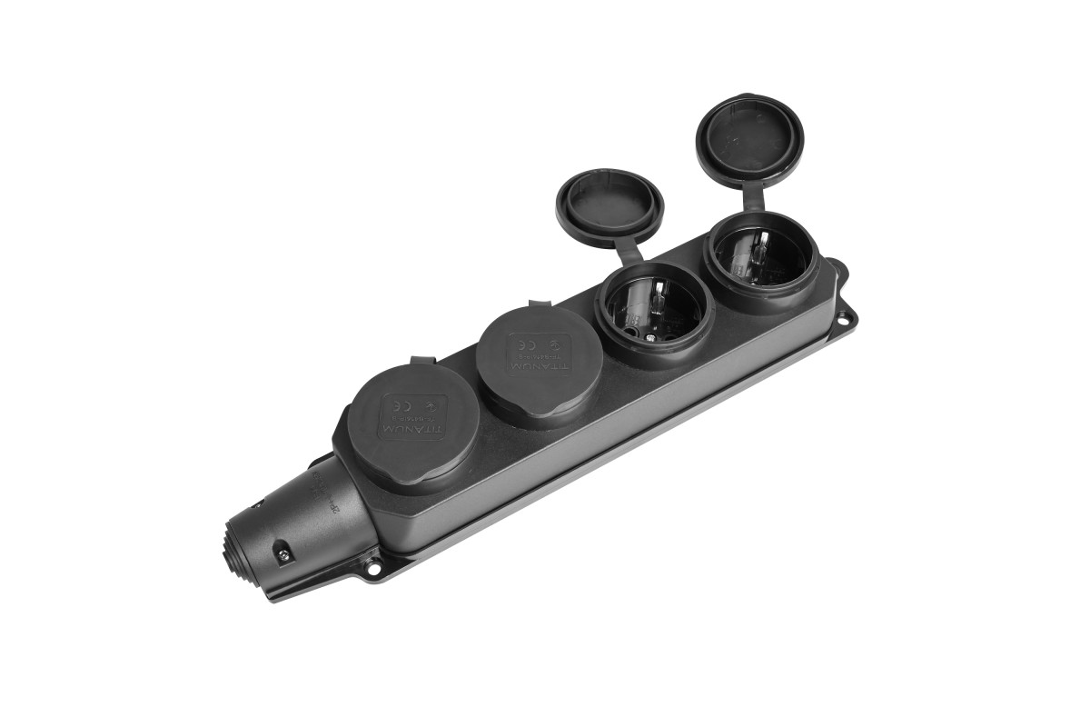 Extension socket IP44 with grounding 4 sockets 16A black TITANUM STANDARD