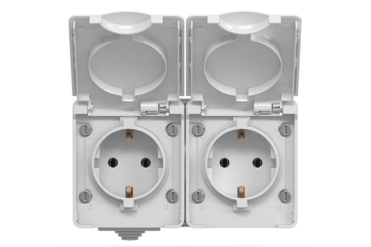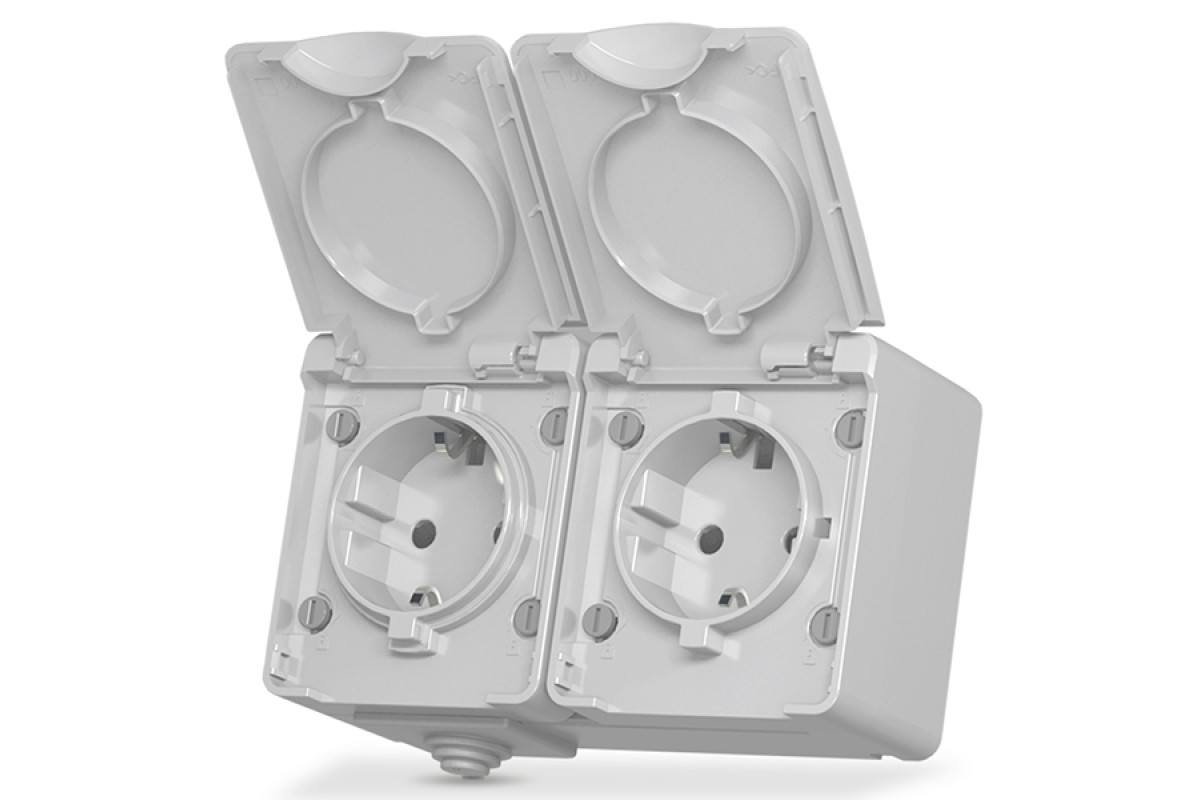 External double socket with grounding gray IP65 BINERA (VF-BNW22G-G) VIDEX