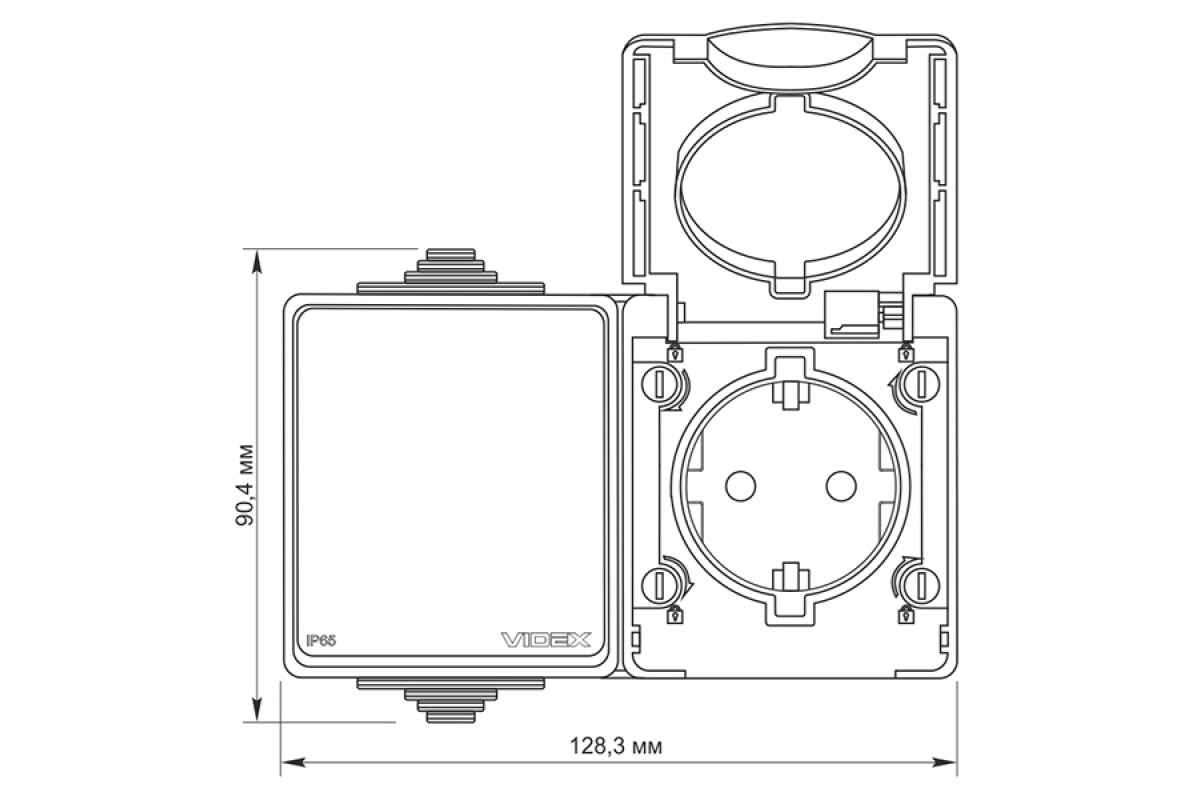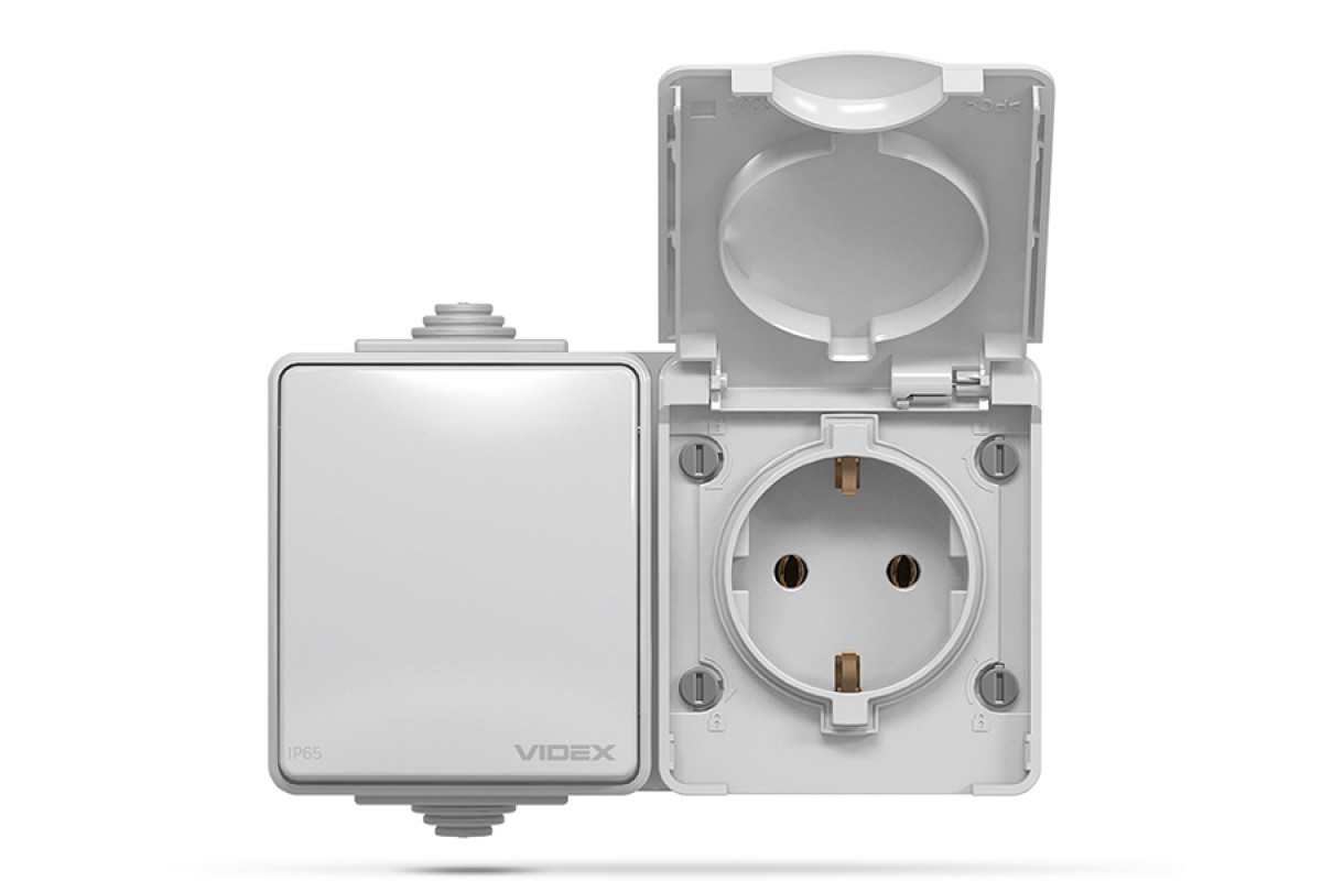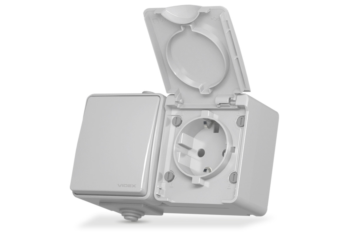 External single socket with grounding and single-button switch gray IP65 BINERA (VF-BNW3-G) VIDEX