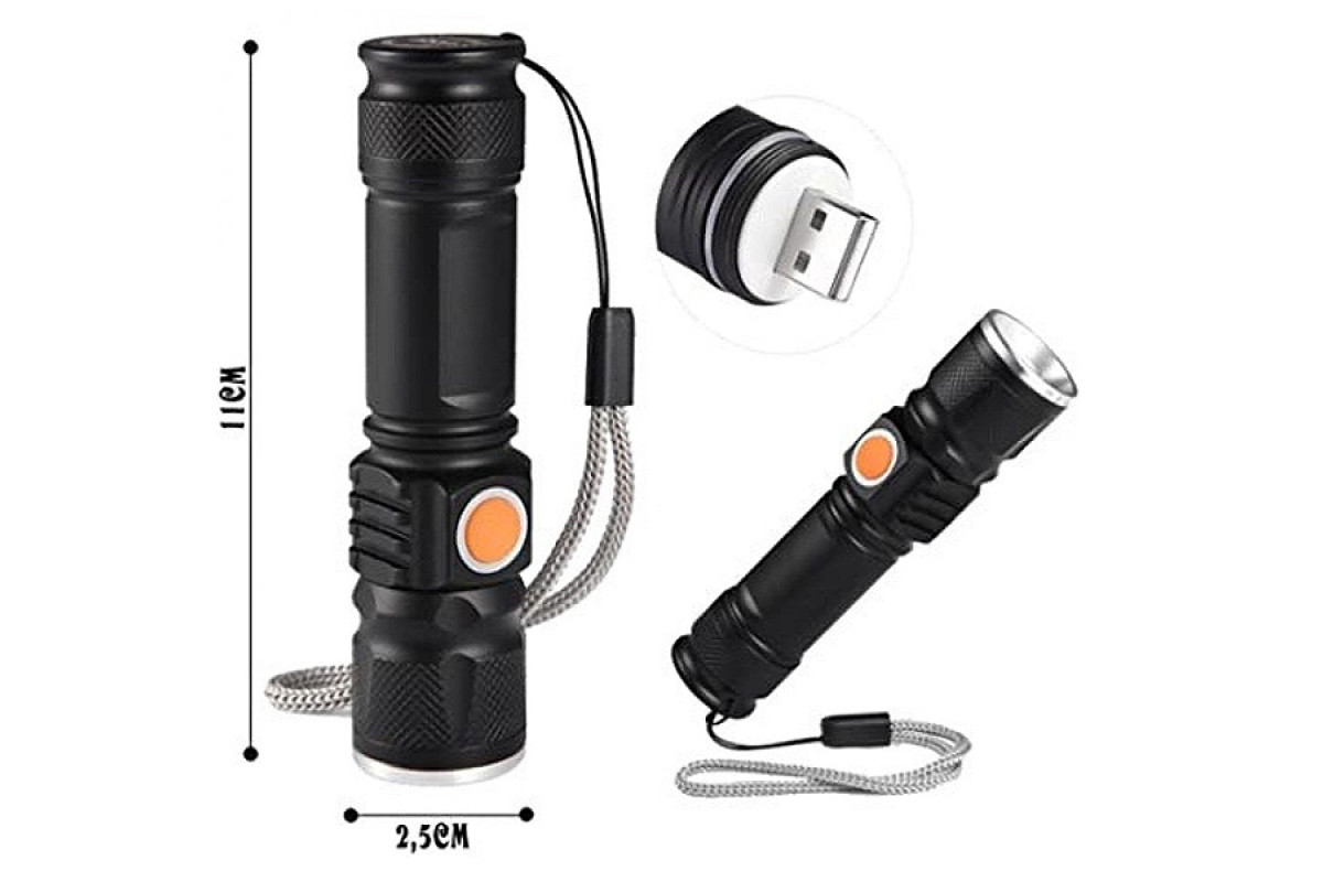 Flashlight 515-T6, USB charger, built-in battery, strap, zoom POLICE