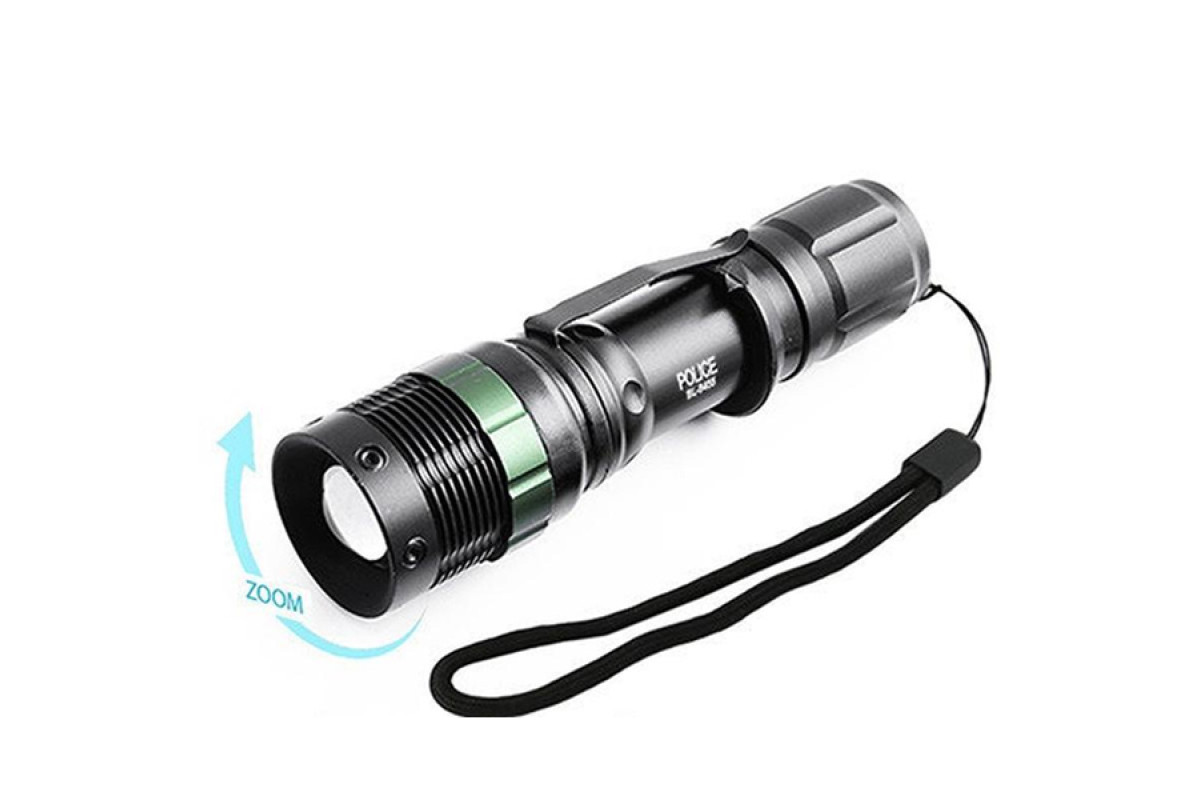 Flashlight 8455A (1*18650), zoom, clip, wrist strap POLICE