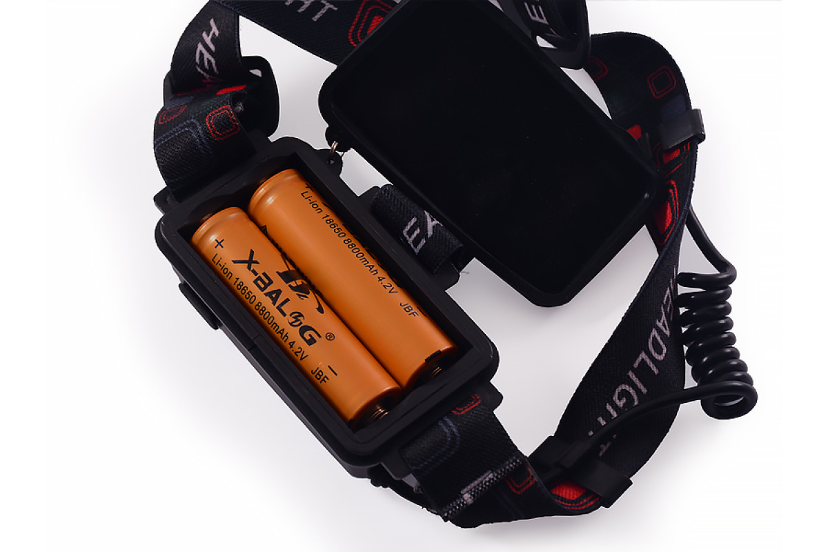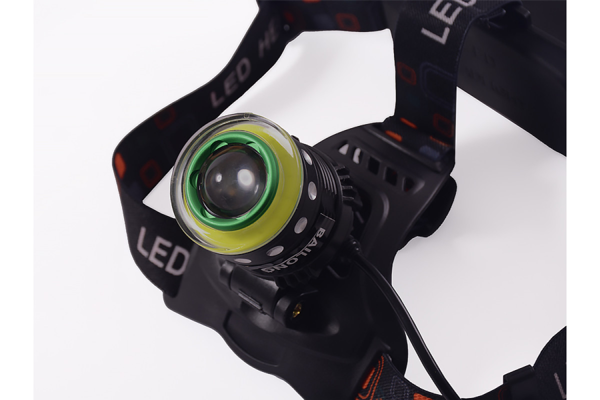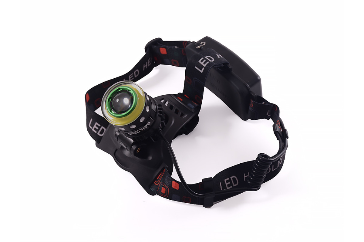 Flashlight forehead T105-T6+COB, charger 220V/12V, 2x18650, zoom, Box "POLICE"