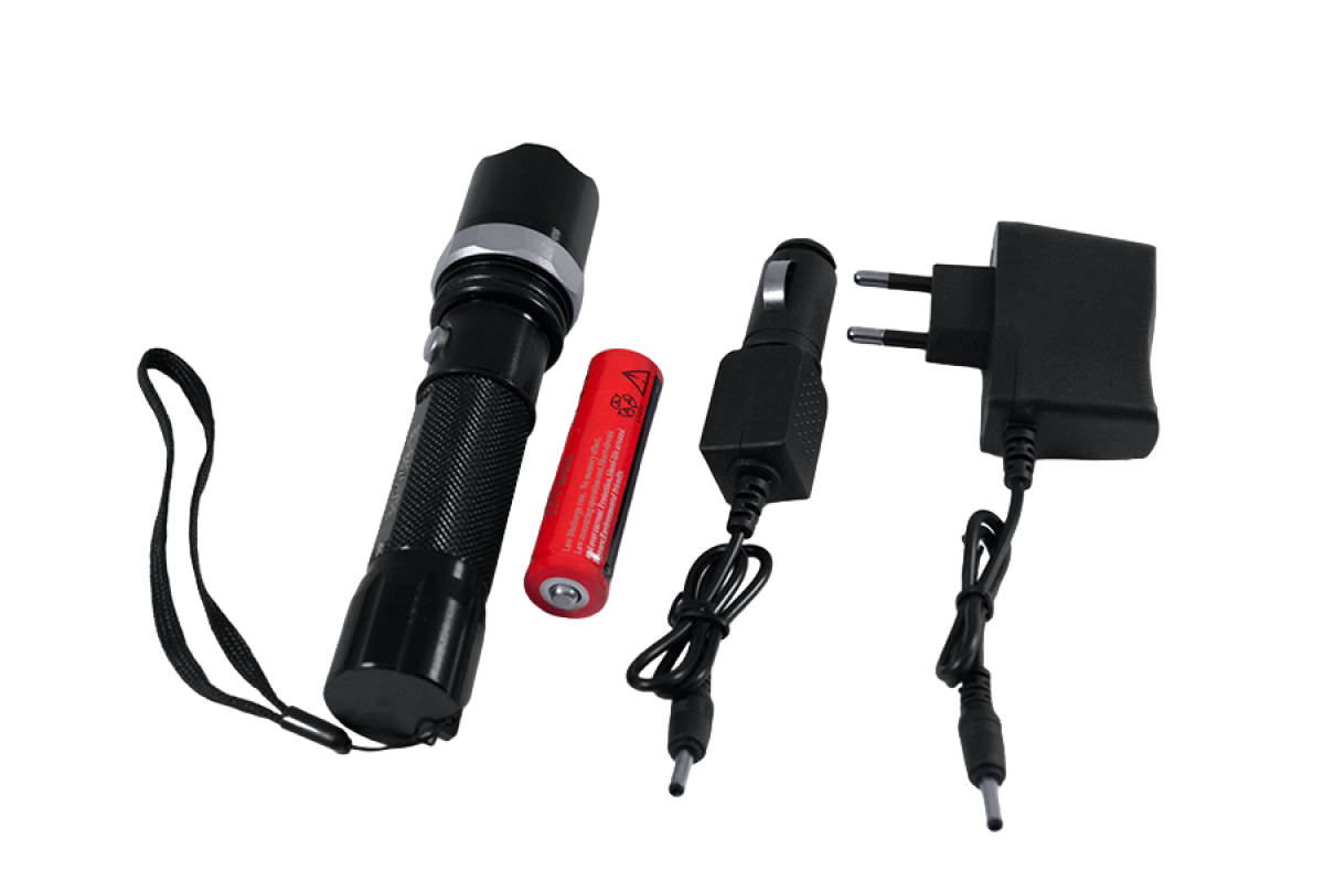 Flashlight rechargeable 8626-XPE, 220V charger, cigarette lighter, zoom