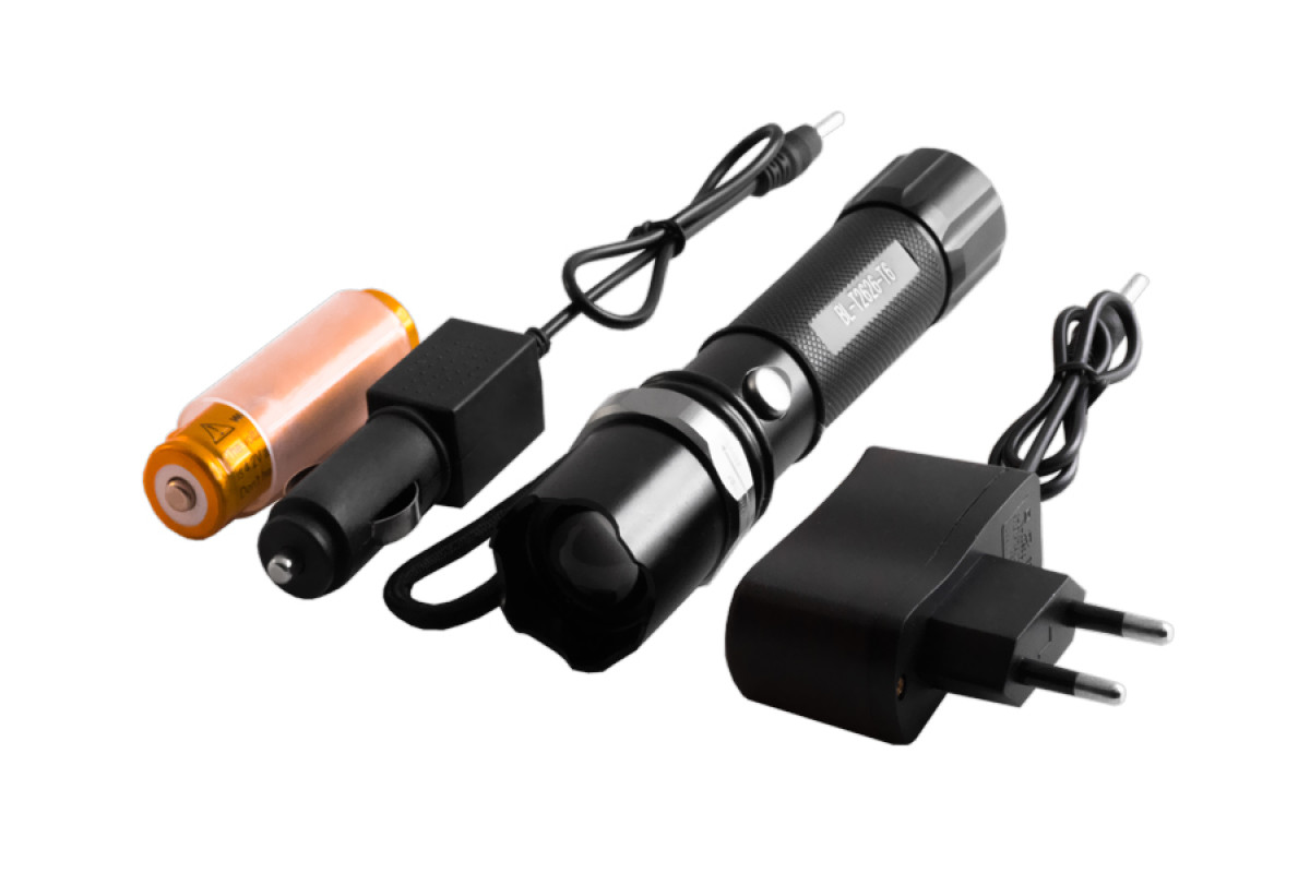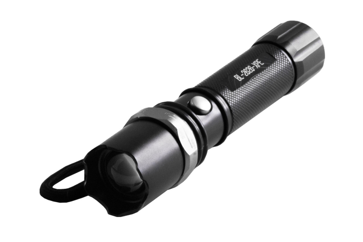 Flashlight T8626/2626-XPE, 1x18650/3xAAA, W/U 220V/12V, zoom, Box Police