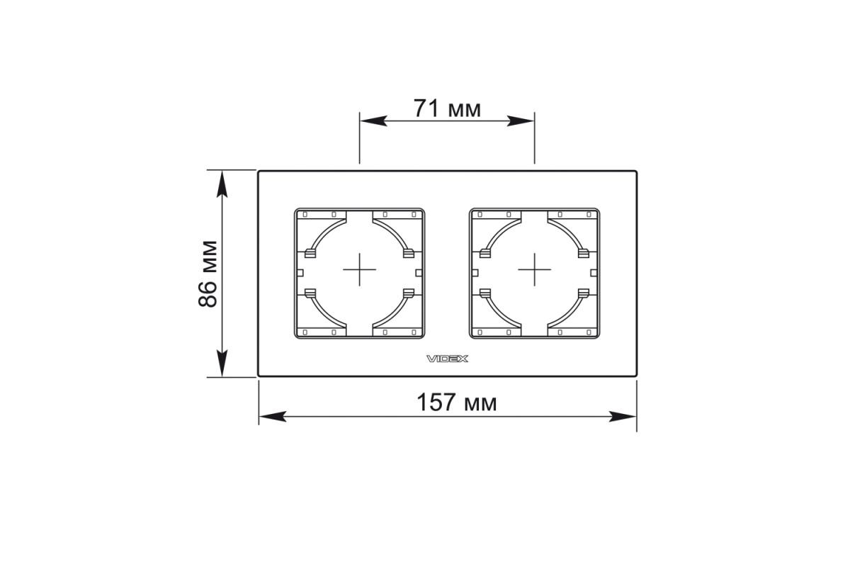 Frame black glass for 2 places horizontal VIDEX BINERA