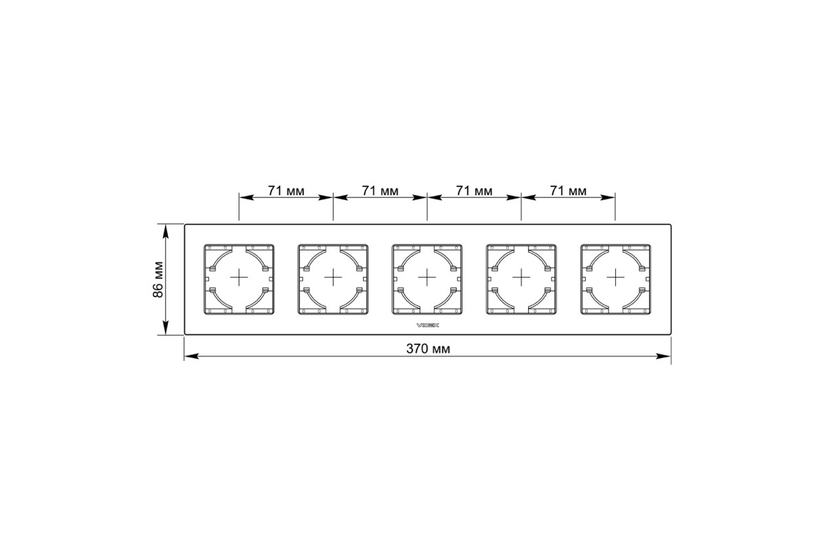 Frame black glass for 5 places horizontal VIDEX BINERA