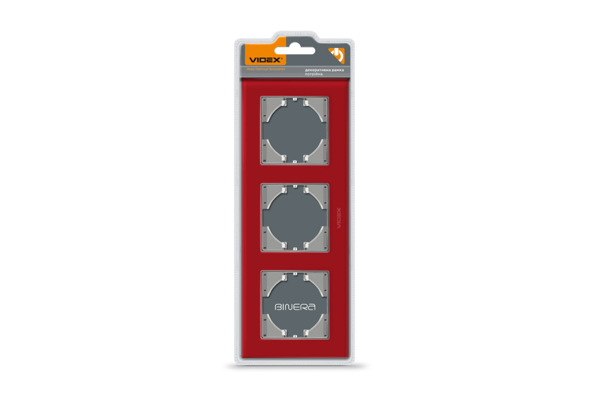Frame red glass for 3 places horizontal VIDEX BINERA