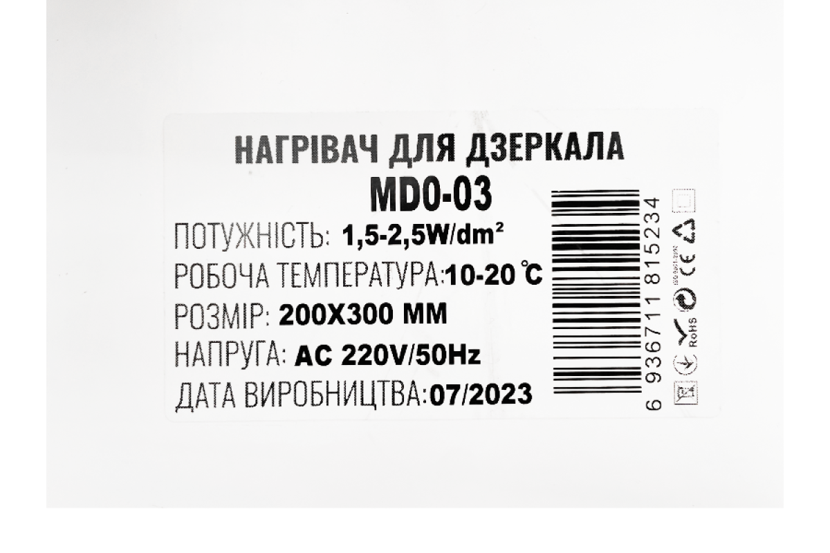 Heating film rectangular for mirrors (anti-fog) MD0-03 200*300mm 220-240V