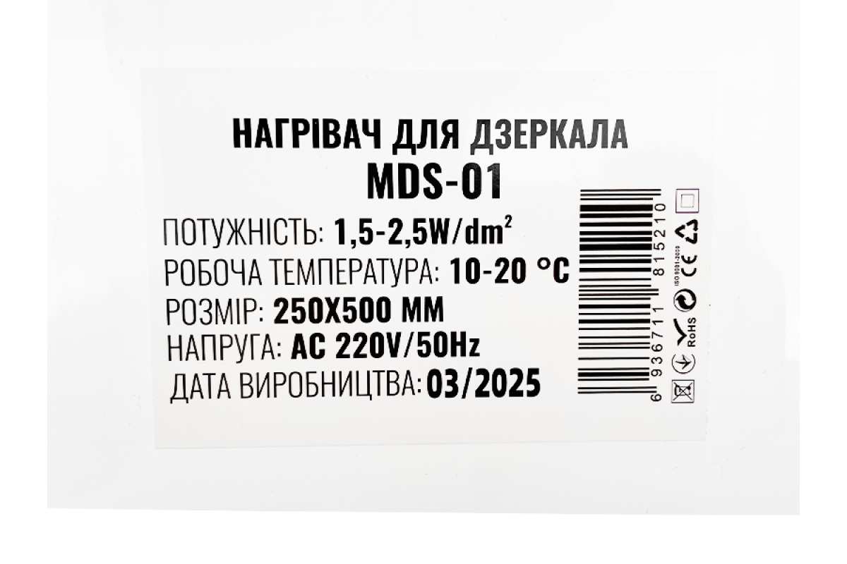 Heating film rectangular for mirrors (anti-fog) MDS-01 250*500mm 220-240V