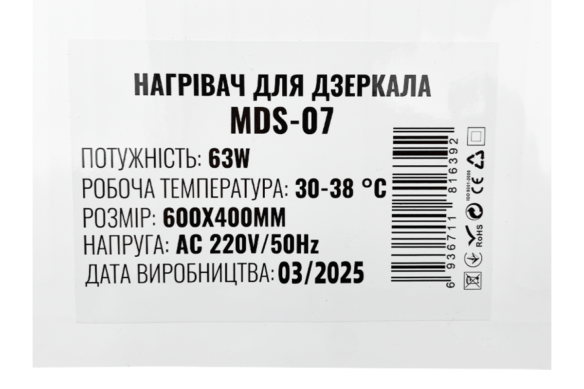 Heating film rectangular for mirrors (anti-fog) MDS-07 400*600mm 220-240V