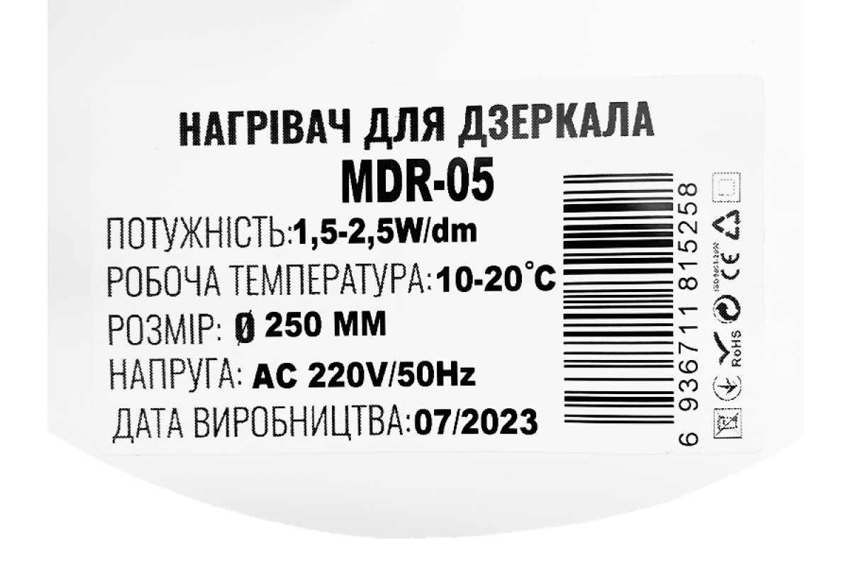 Heating film round for mirrors (anti-fog) MDR-05 250mm 220-240V