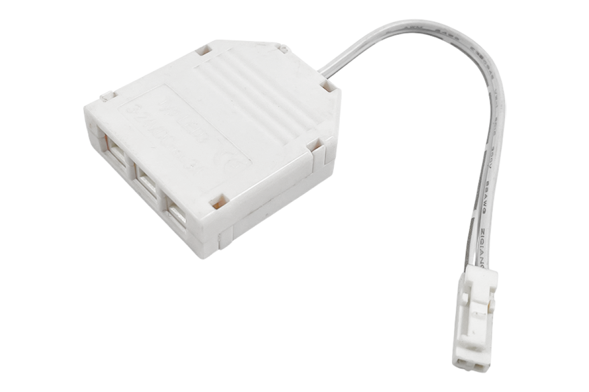 Junction box 3 holes, white, 100mm 22AWG mini male connector LEDUA