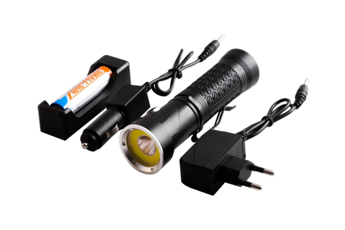 Lamp 1822-T6+COB(White+Red), 1x18650/3xAAA, 220V/12V battery, 90° rotation, BOX Police