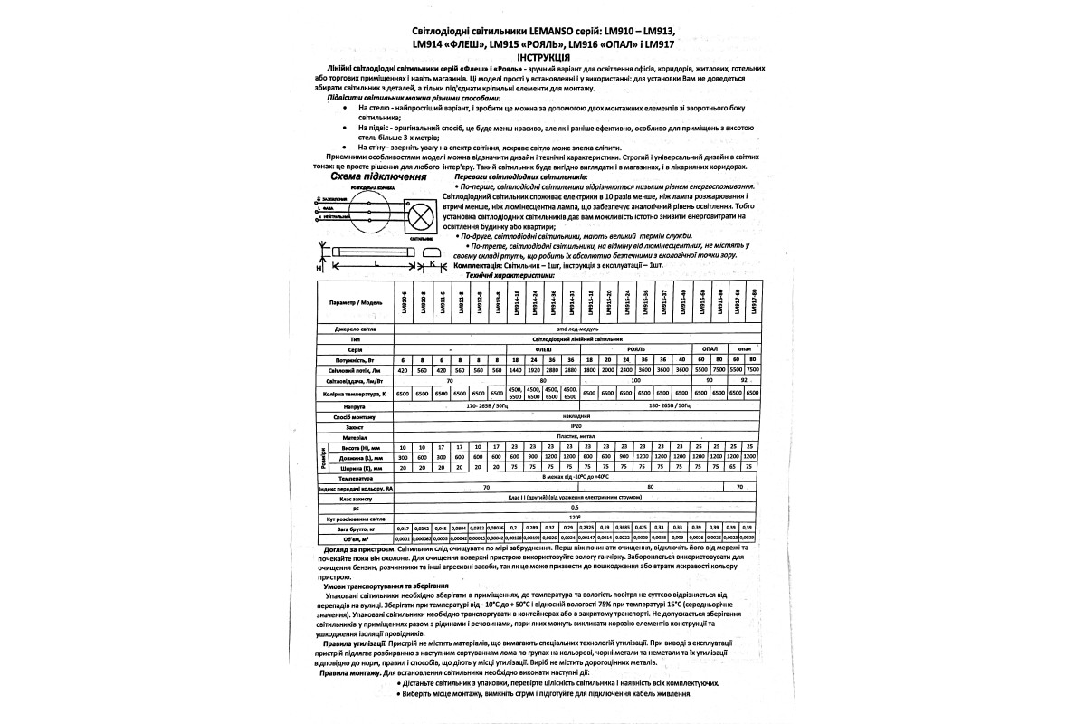 Lamp 80W 6500K 7500LM IP20 185/265V 1.2m opal / LM917-80 Lemanso