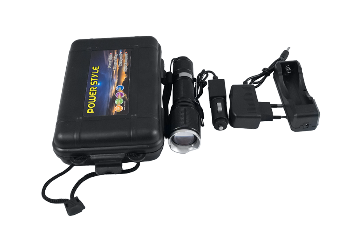 Lamp rechargeable 1860-T6, 1x18650, 220V charger, cigarette lighter