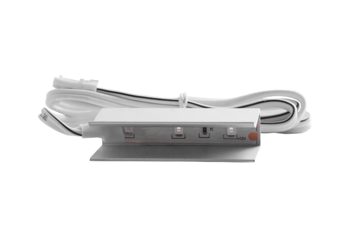 LED clip aluminum for lighting glass shelves 12V 0.72w blue light, white wire LEDUA