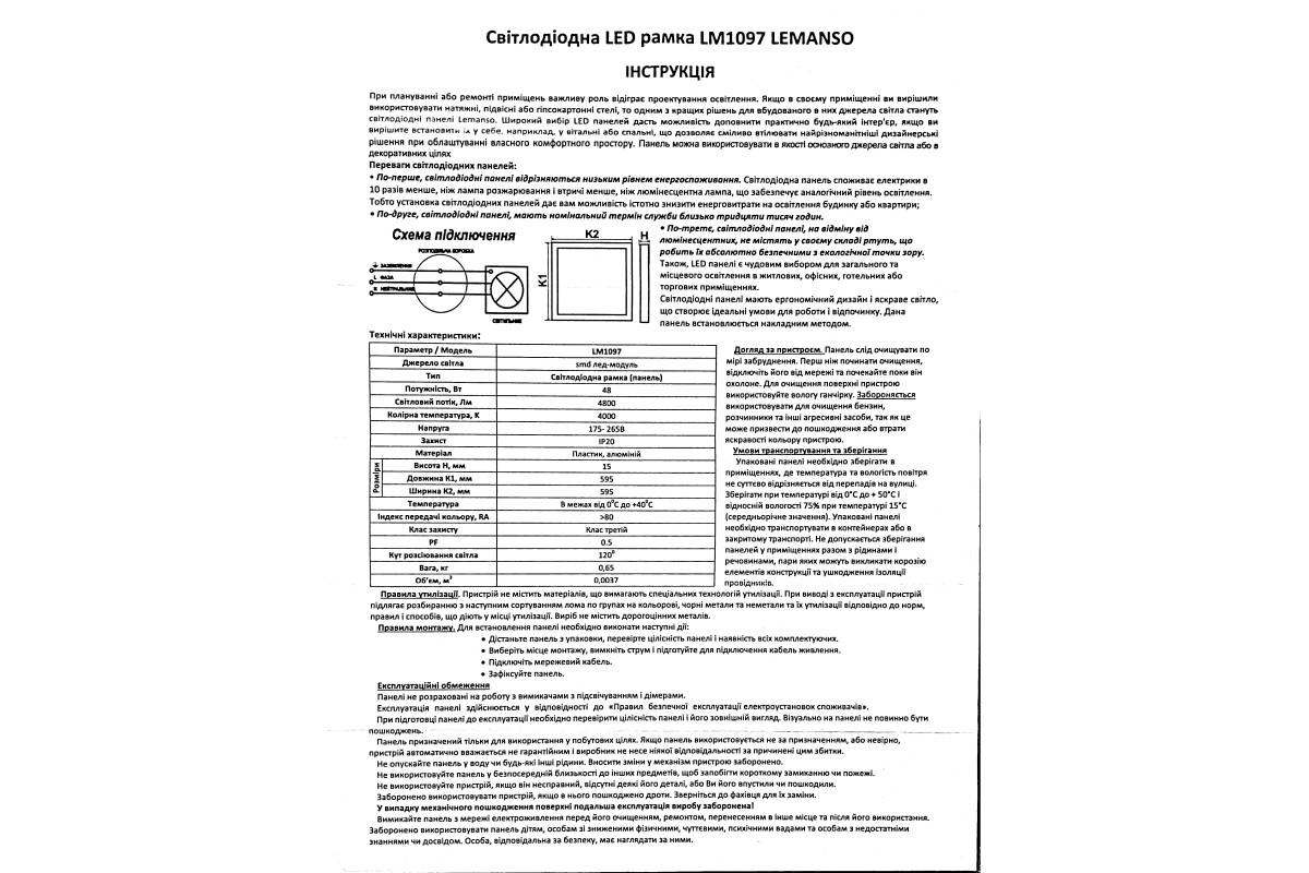 LED frame recessed 48W 4800LM 4000k 175-265V 595*595*15mm LM1097 Lemanso