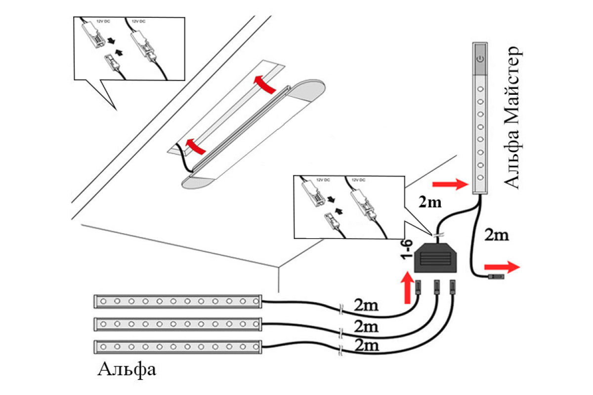 LED furniture recessed lamp Alpha 1100mm 12V 6500K (Without switch) LEDUA